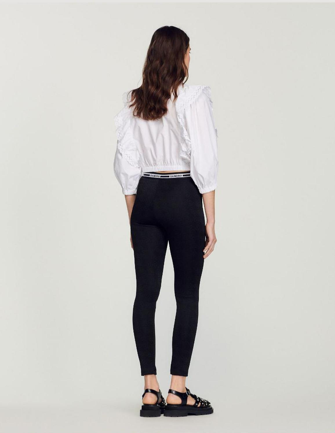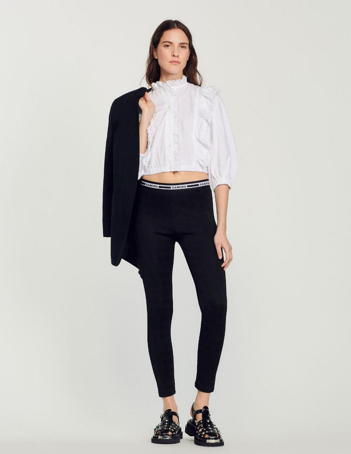 • Jersey leggings in a Sandro jacquard with an elasticated logo waistband.