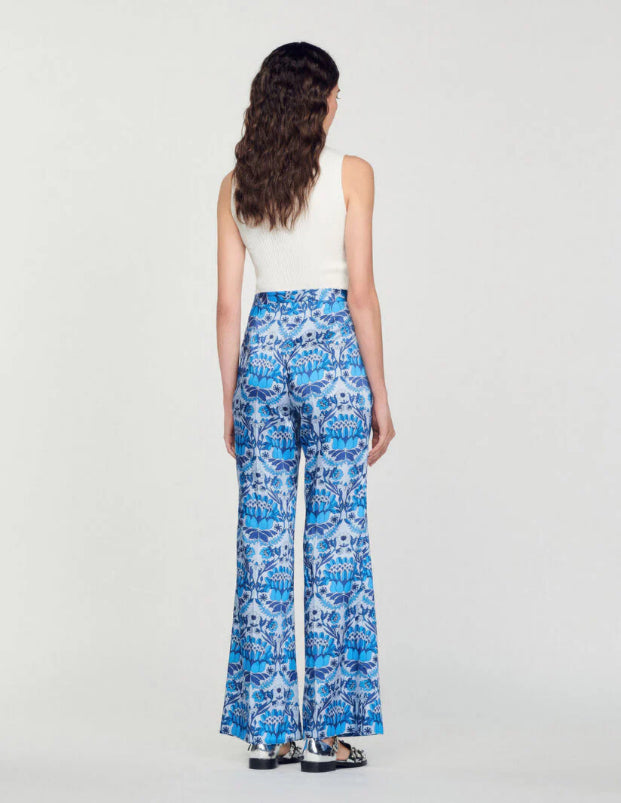 SANDRO - Women's Loose-Fit Scarf Print Trousers