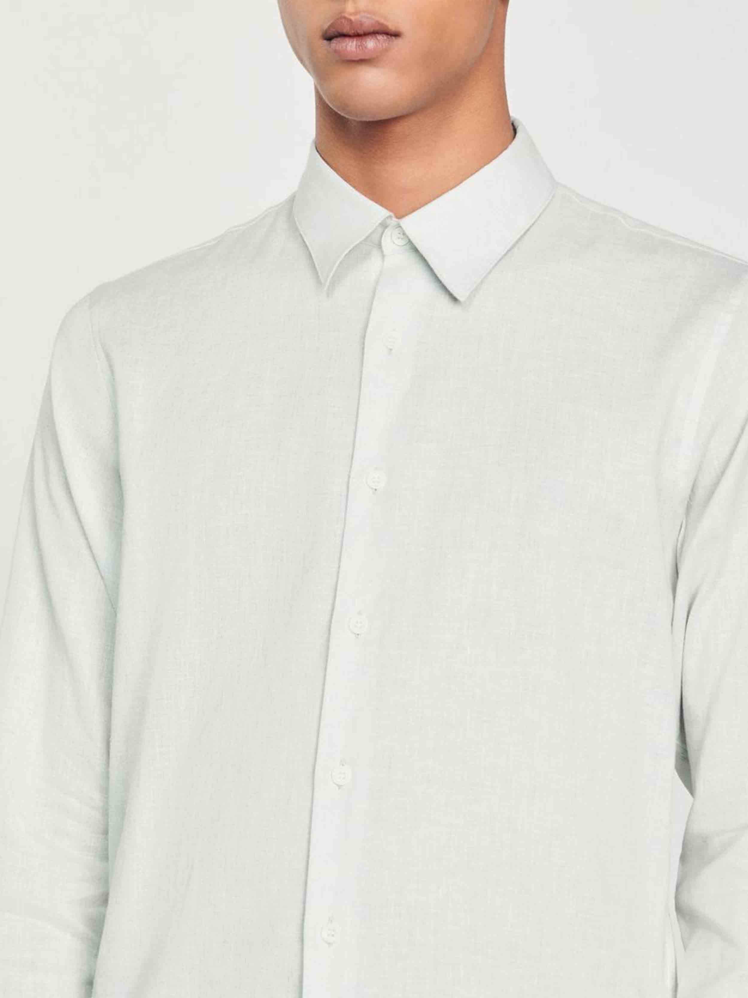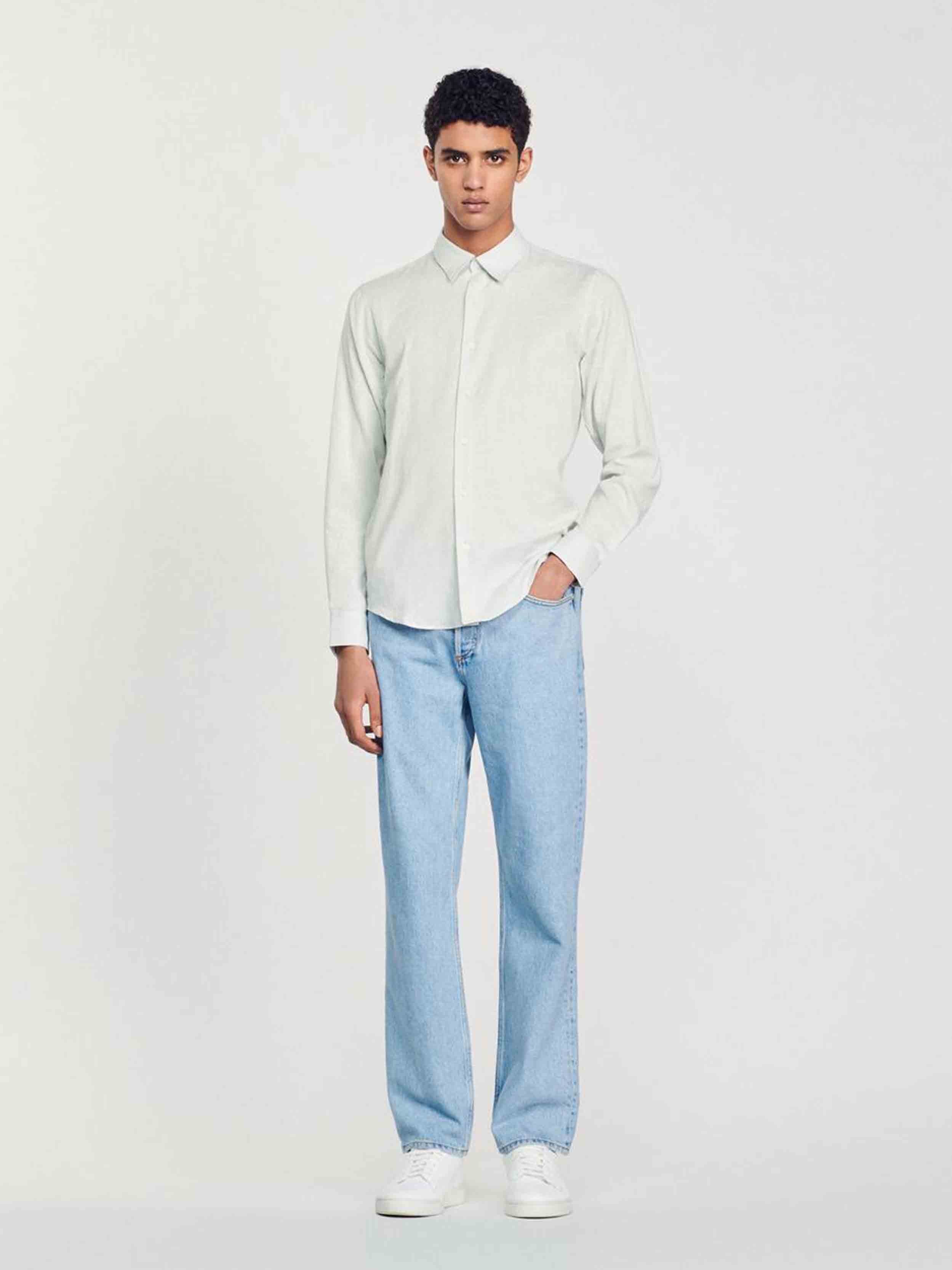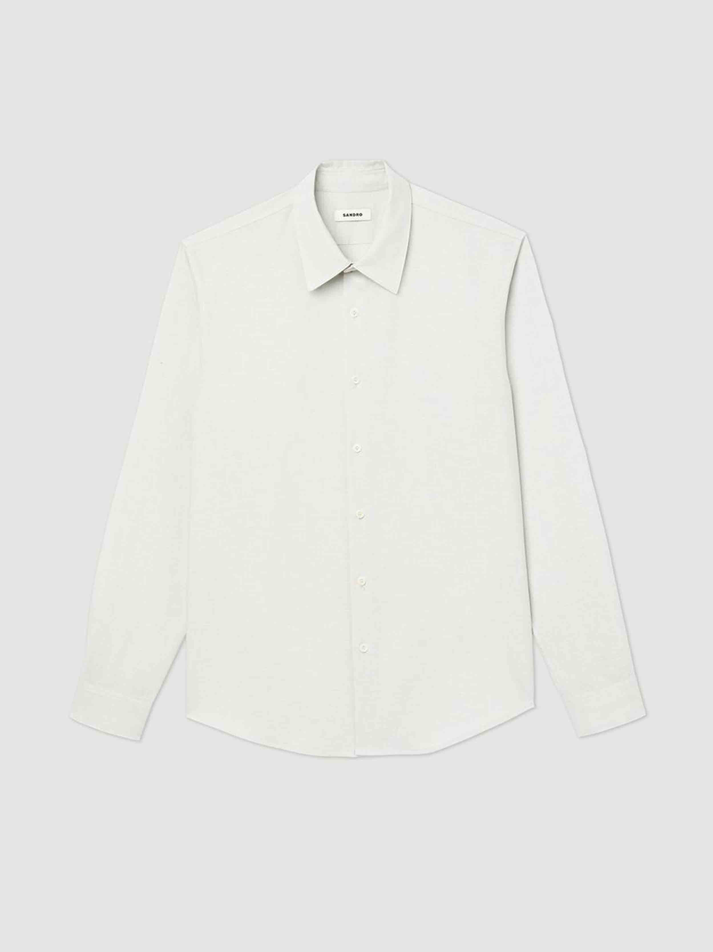 • Classic buttoned shirt with a stand collar and long sleeves with buttoned cuffs.