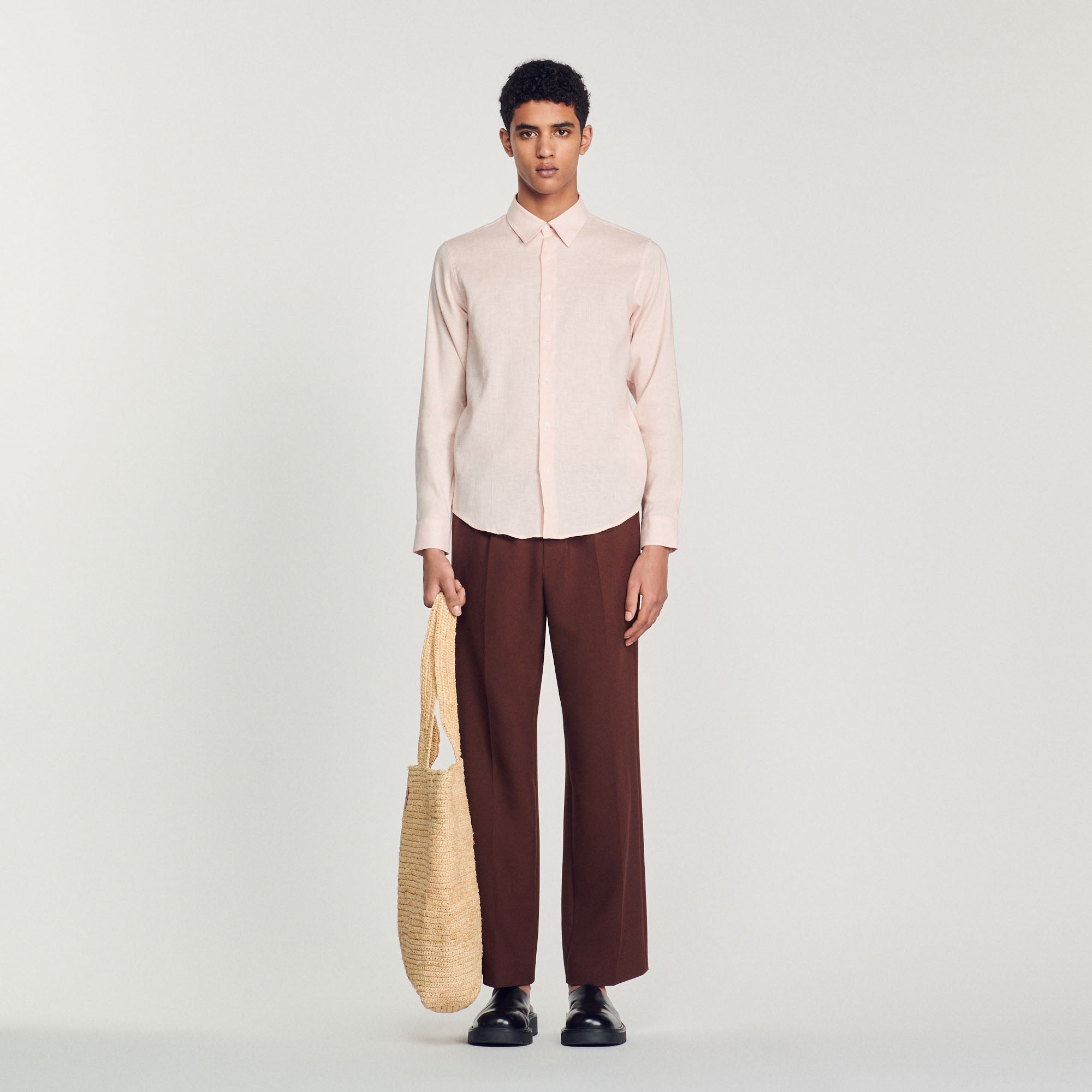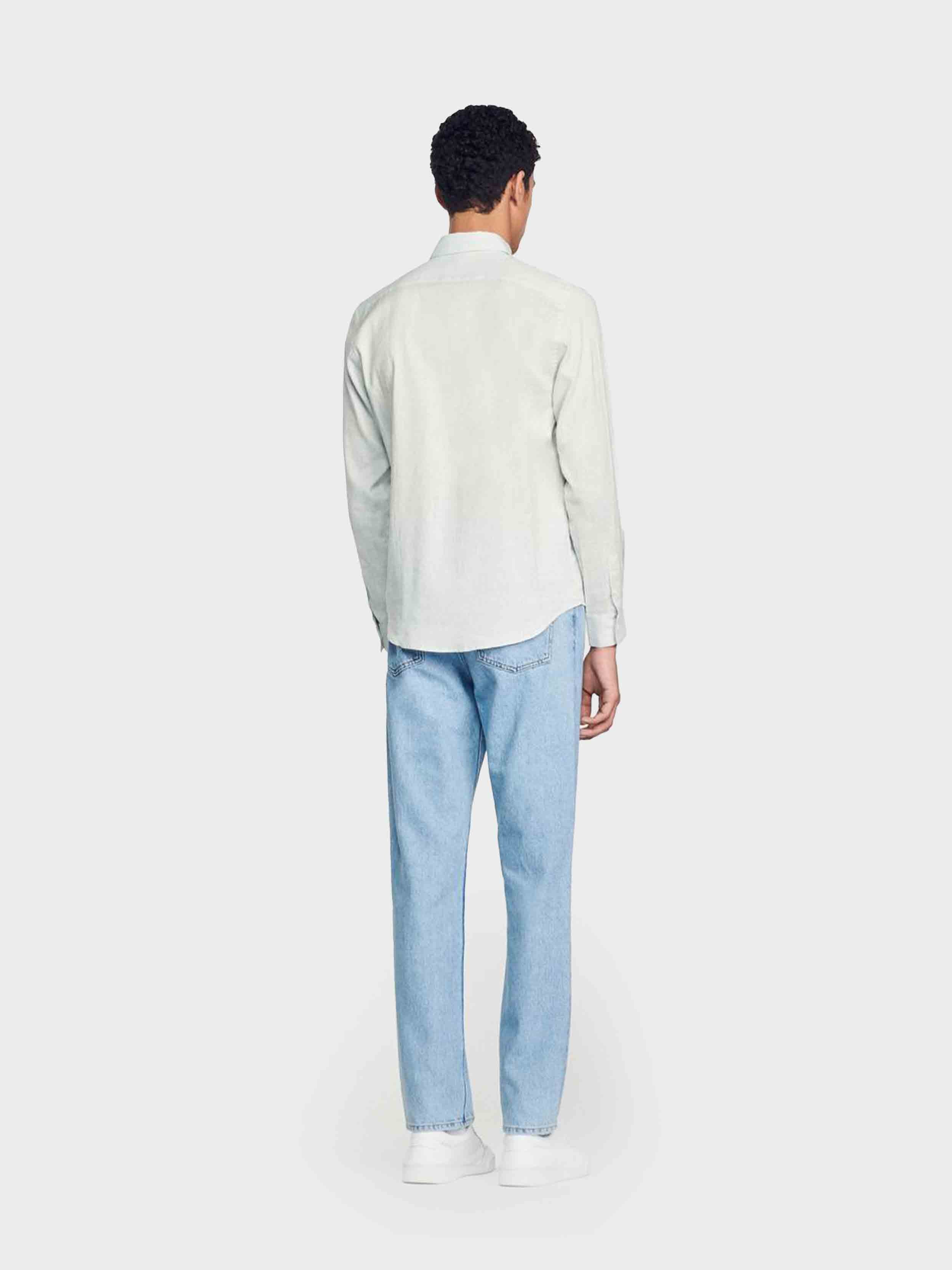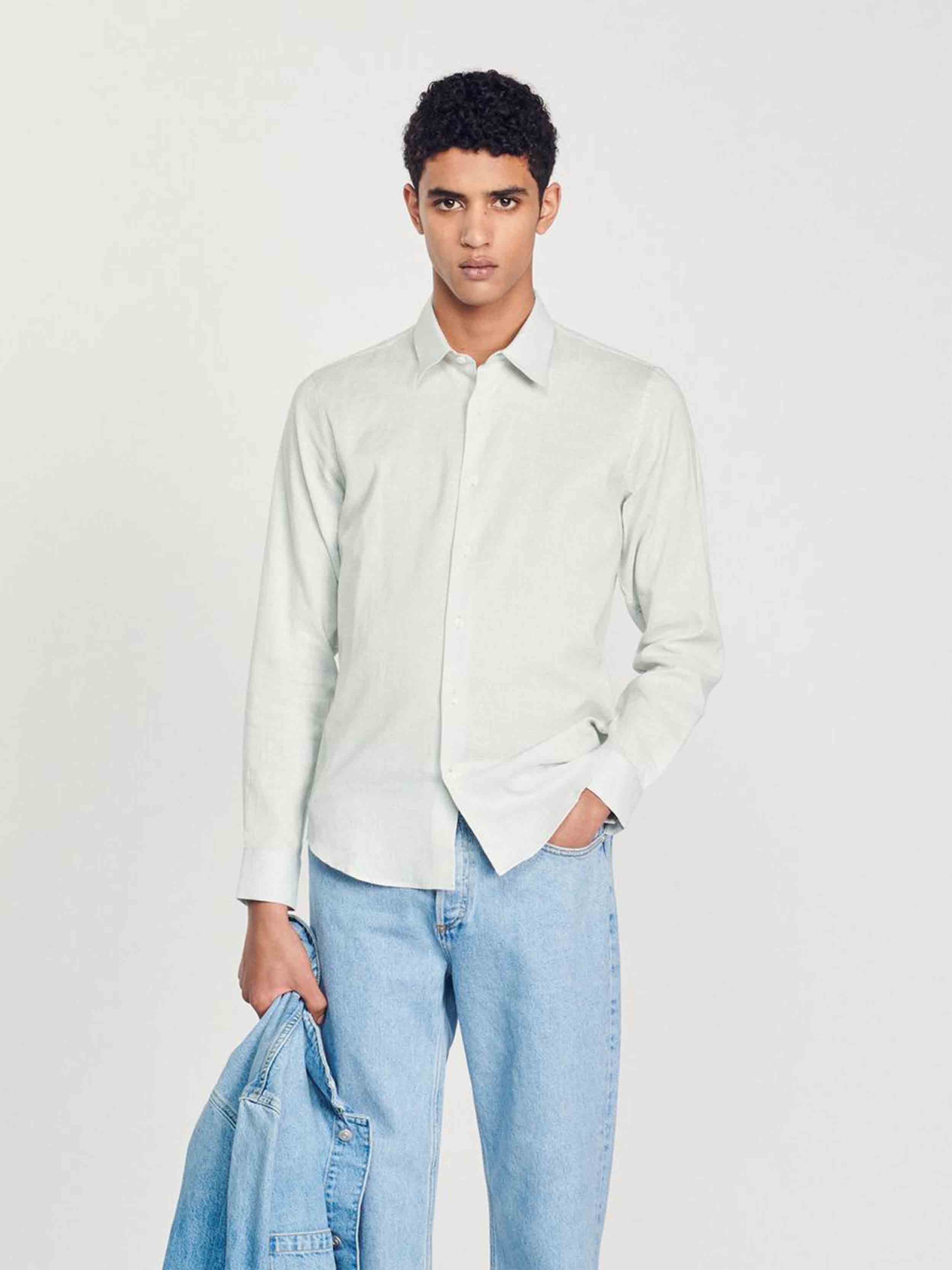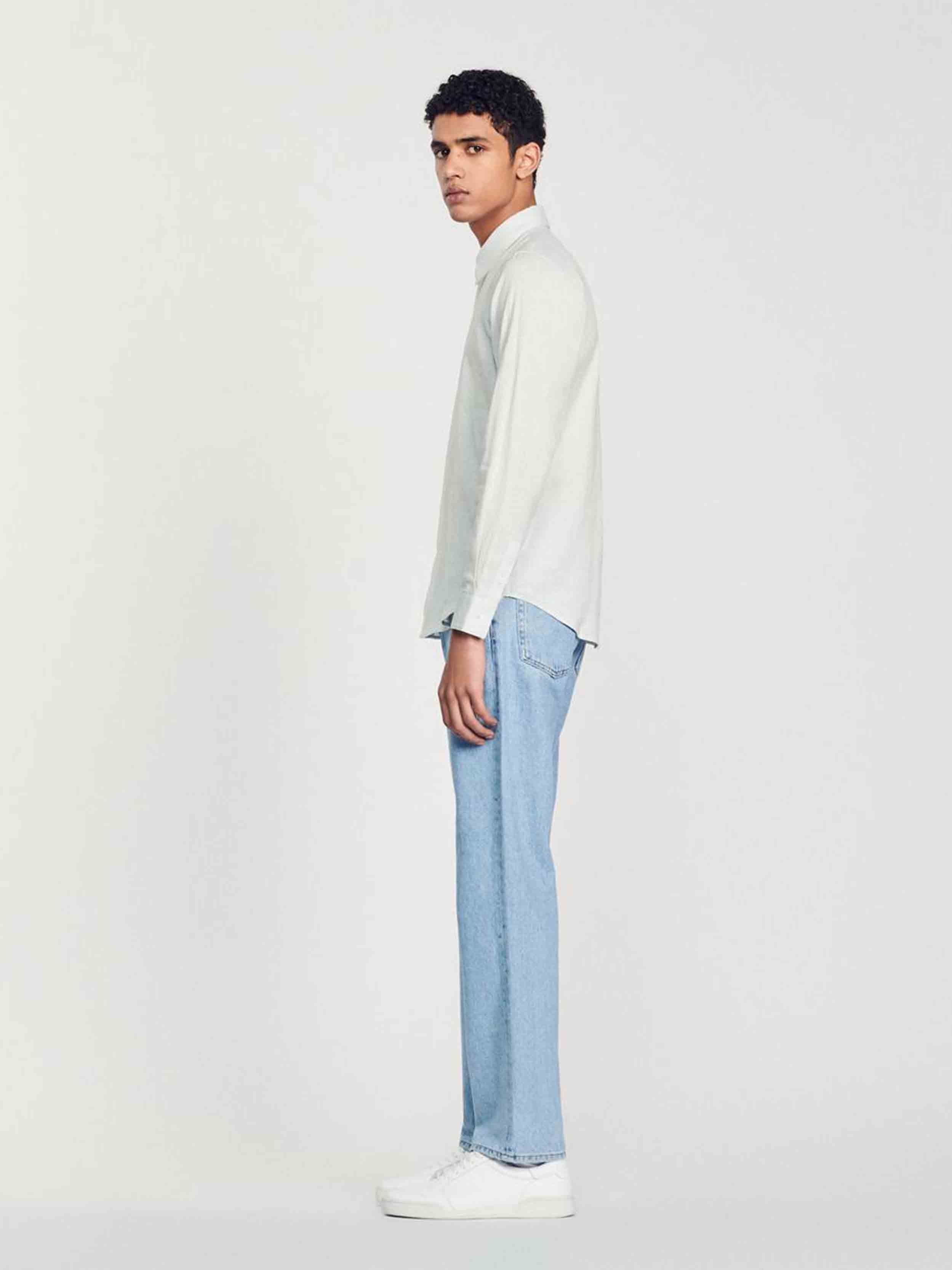 • Classic buttoned shirt with a stand collar and long sleeves with buttoned cuffs.