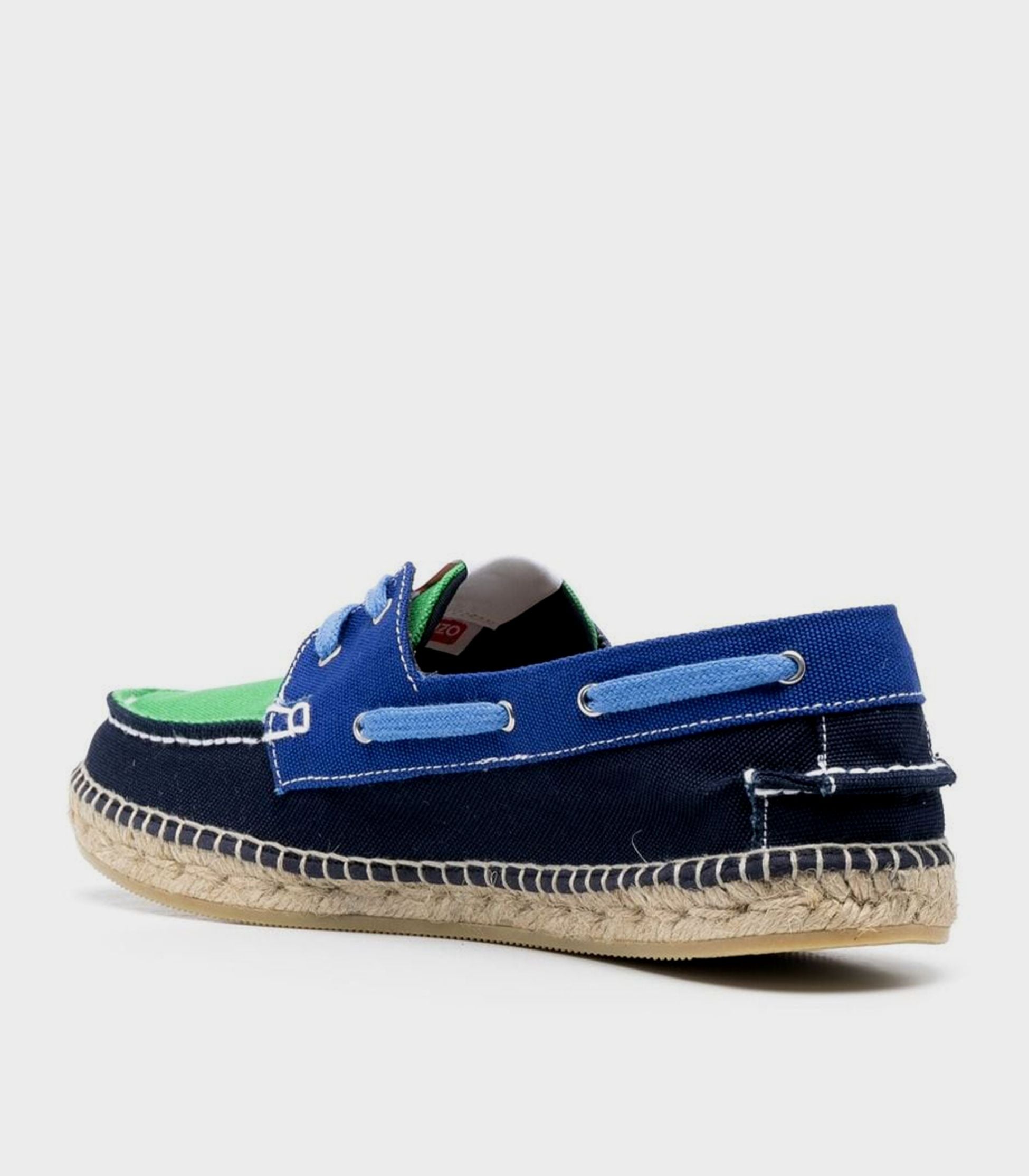 • Crafted in Spain from organic cotton canvas, these shoes combine espadrilles with classic boat shoes, featuring a jute sole, contrasting knit upper, flat laces, and the iconic red label on the tongue and side.