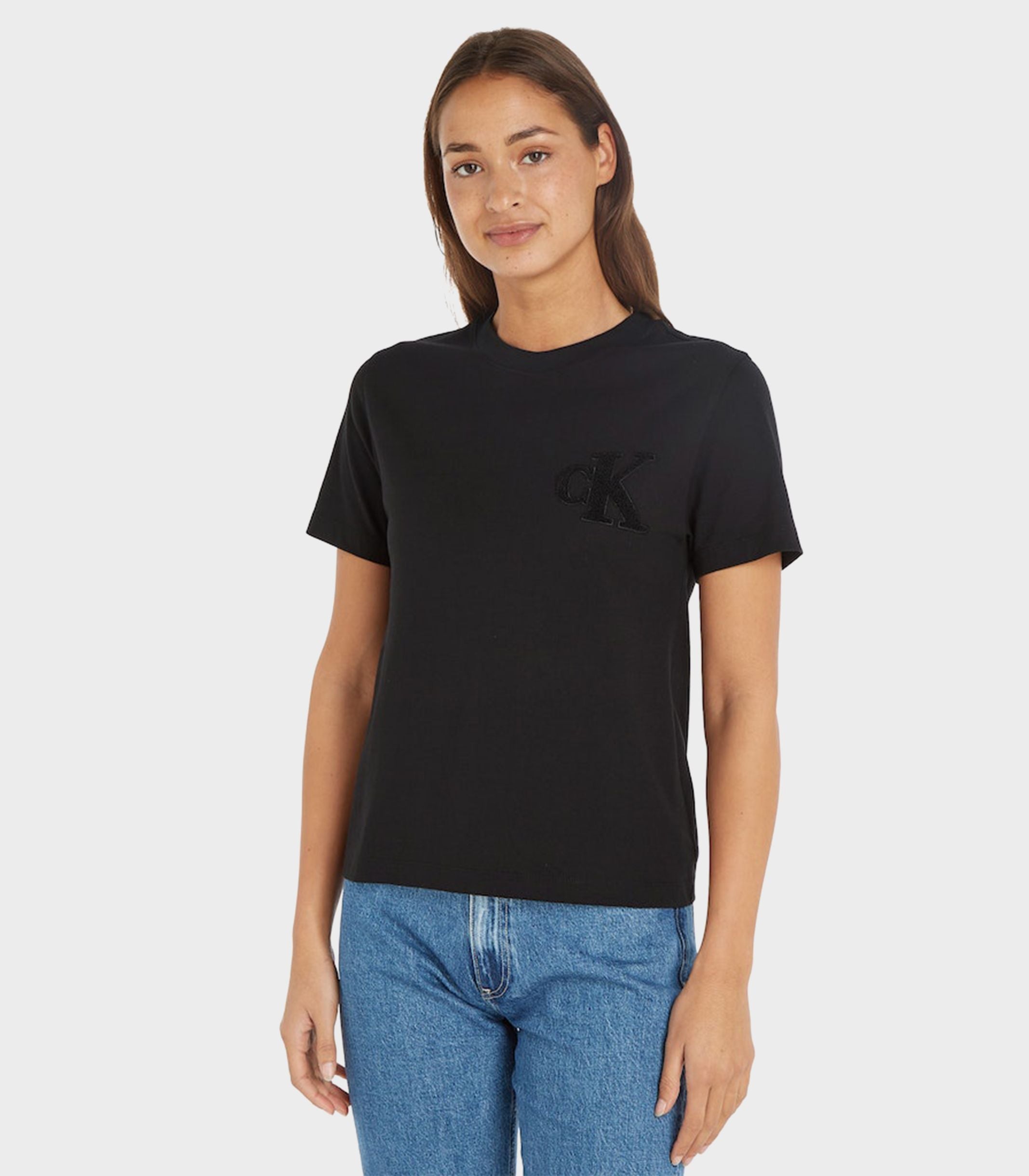 Calvin klein jeans - chenille ck relaxed tee , l , ck black , style j20j221825