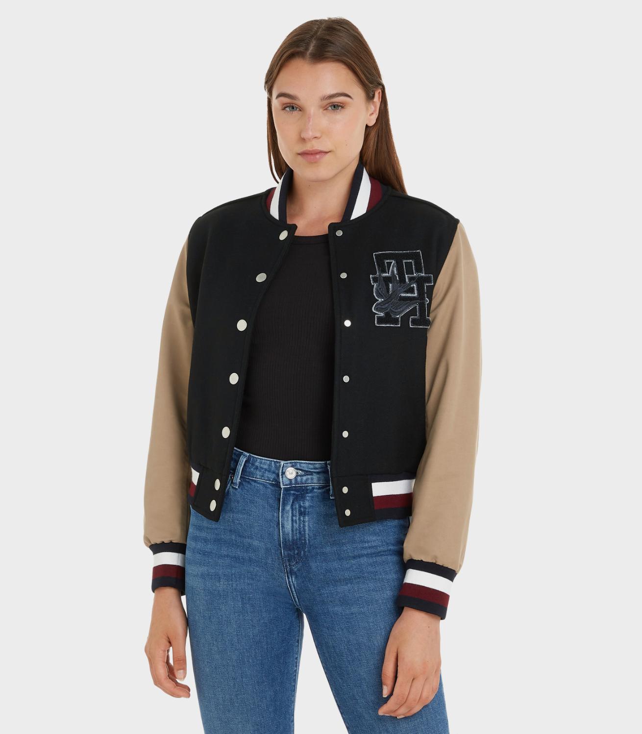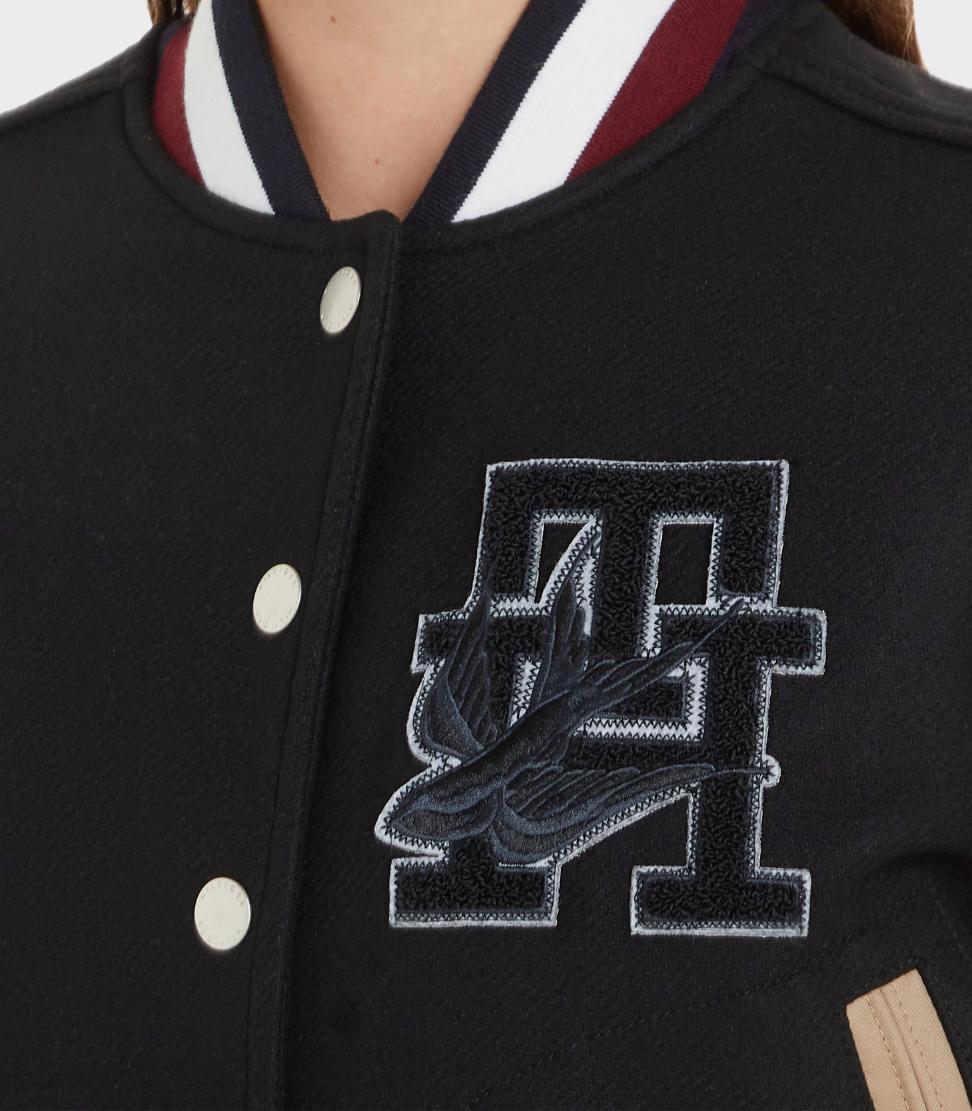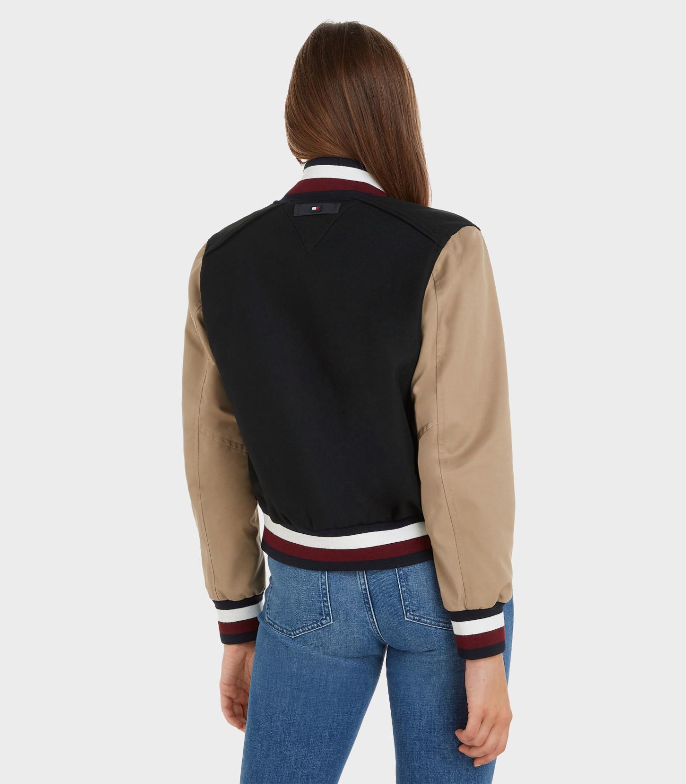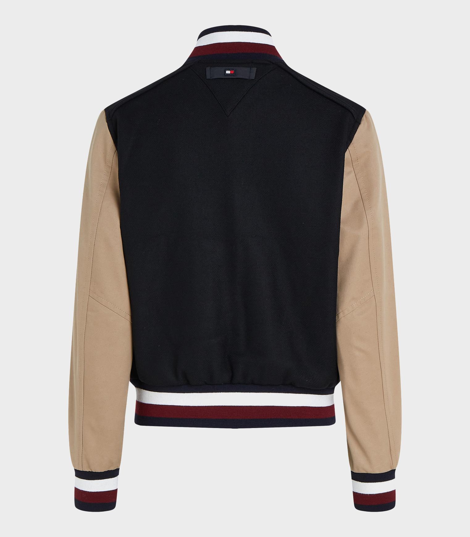 Tommy hilfiger - thxsm wool nylon varsity bomber , m , black / countryside khaki , style ww0ww38981