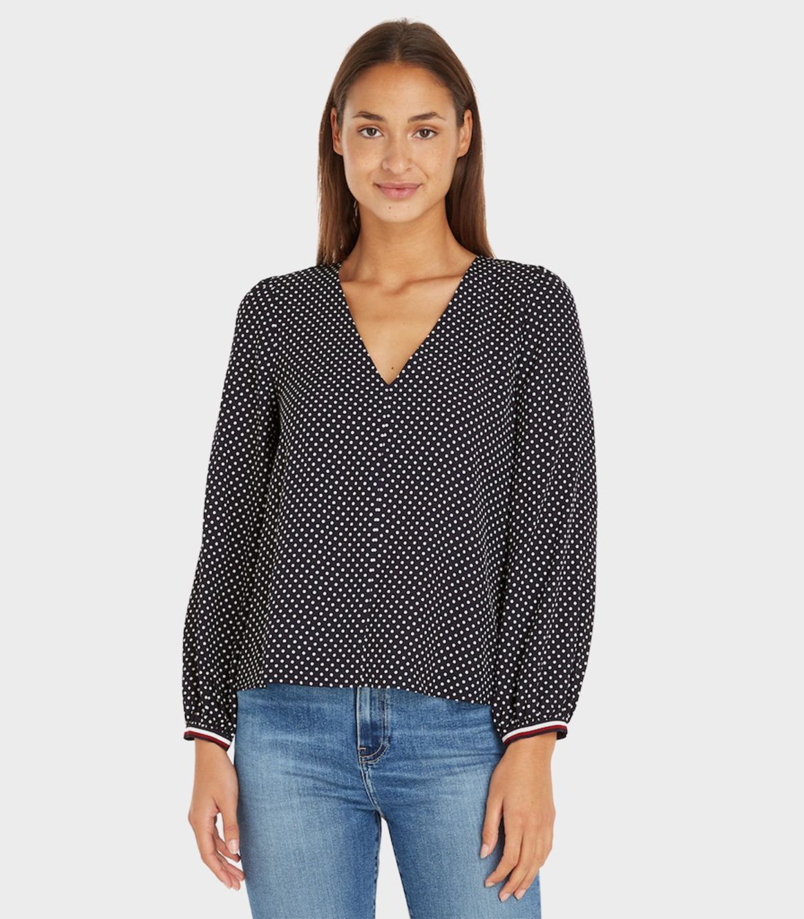 • Tommy Hilfiger - Polka Dot Regular Fit V-Neck Blouse