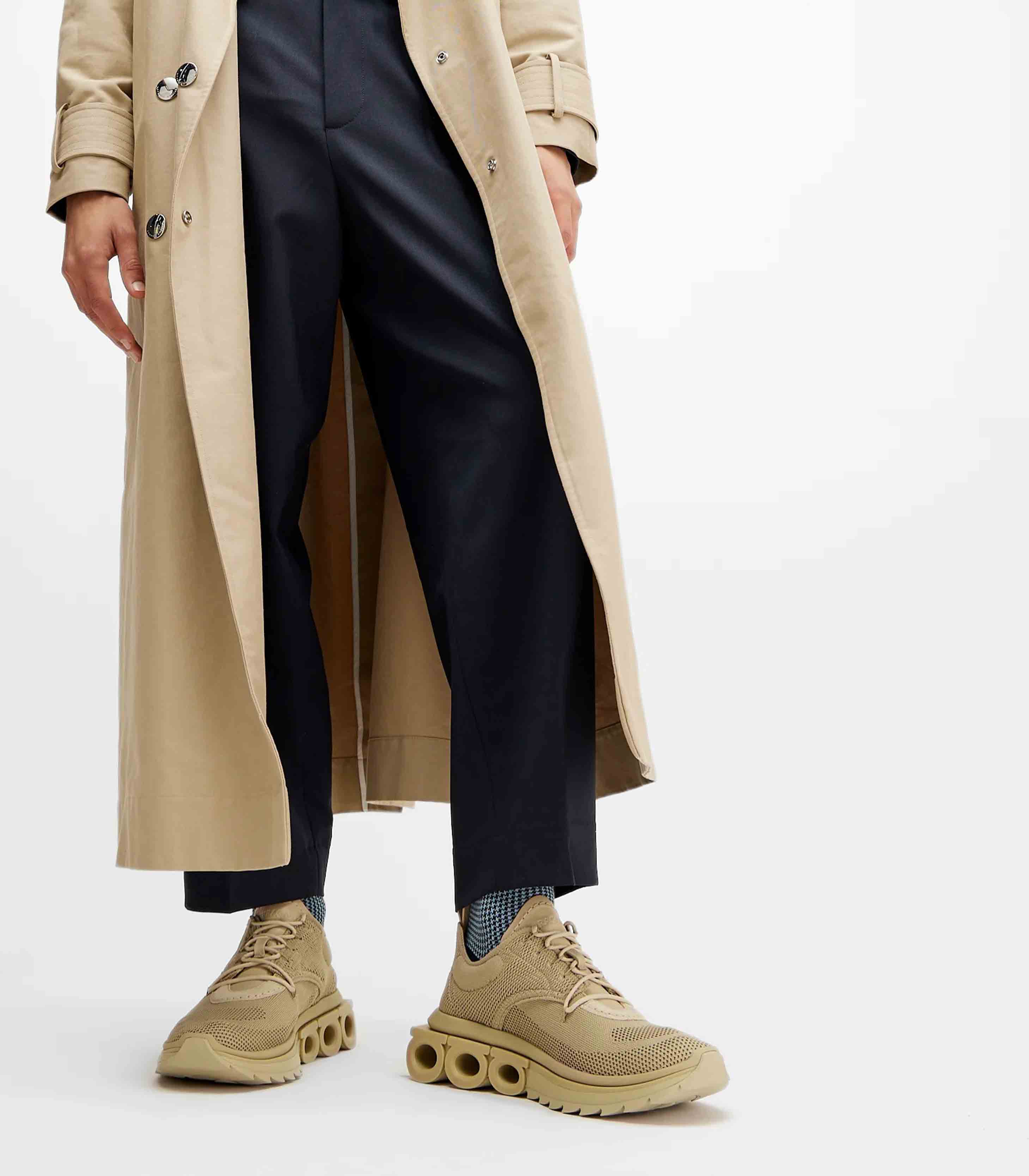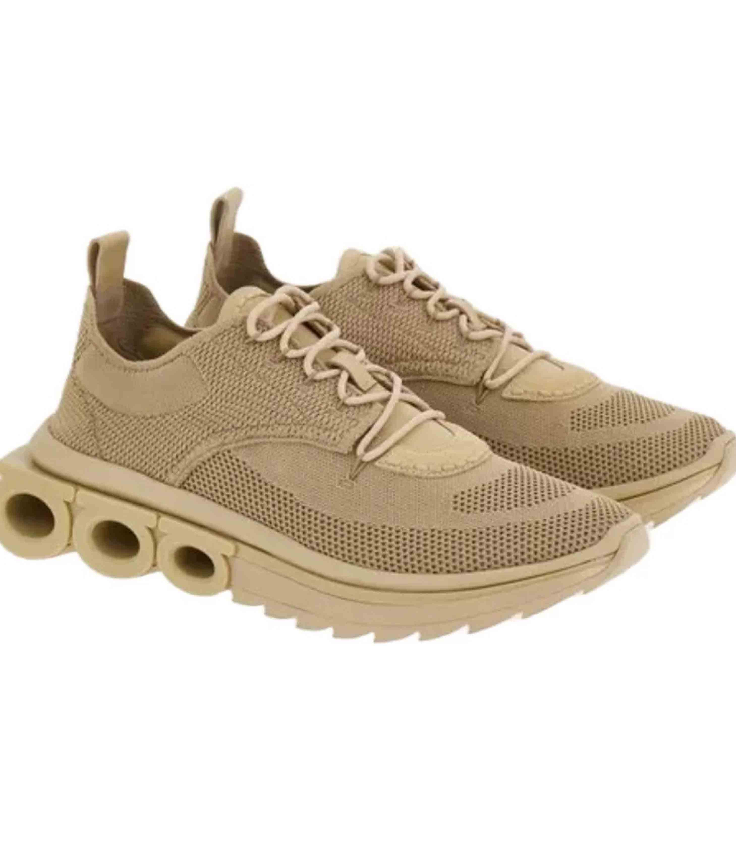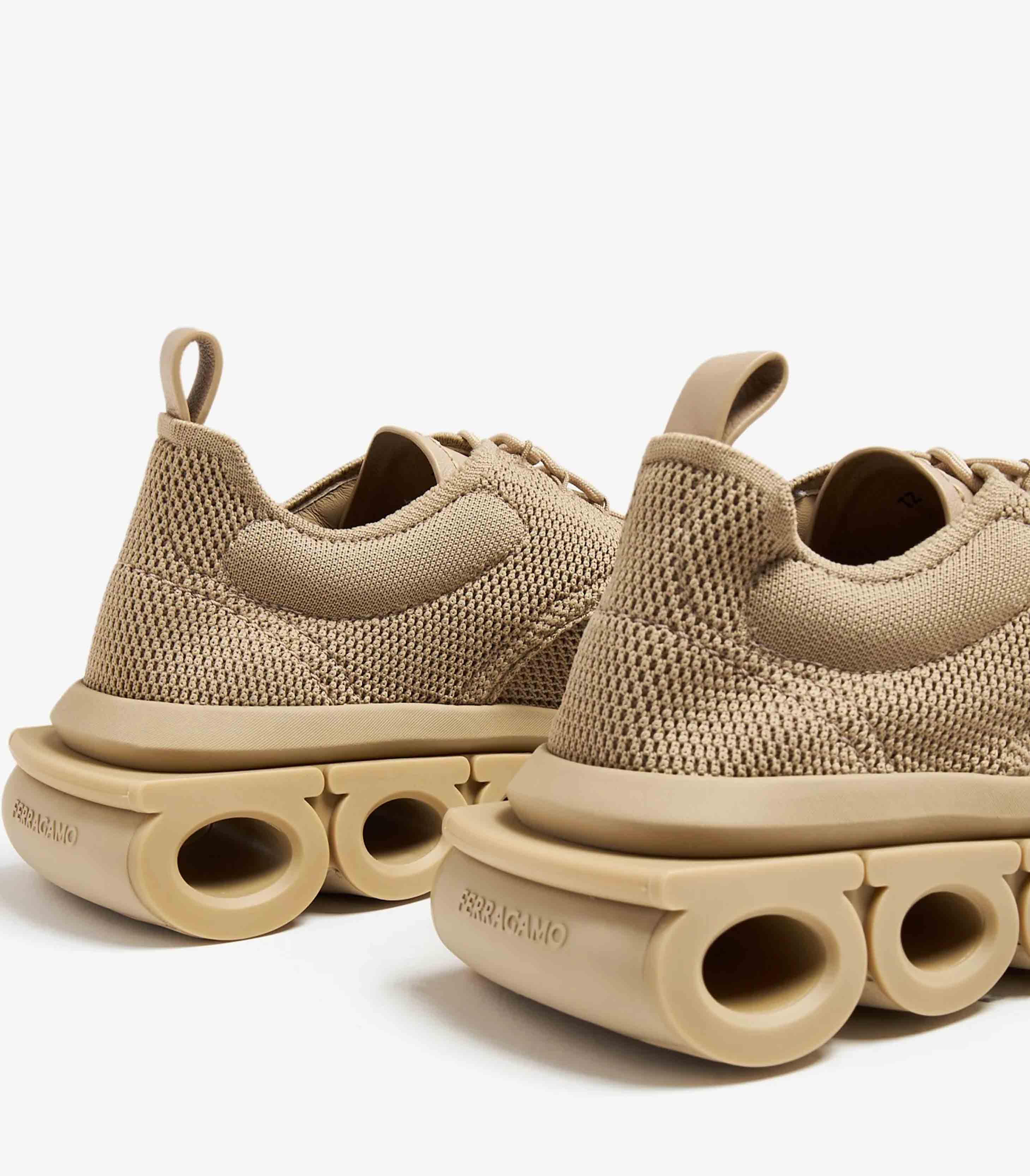 • Made from a recycled technical knit with suede and nubuck details, this pair features a soft, second-skin-effect upper with a bold sole featuring branded details and the Gancini silhouettes on the sides that create a filled/void effect.