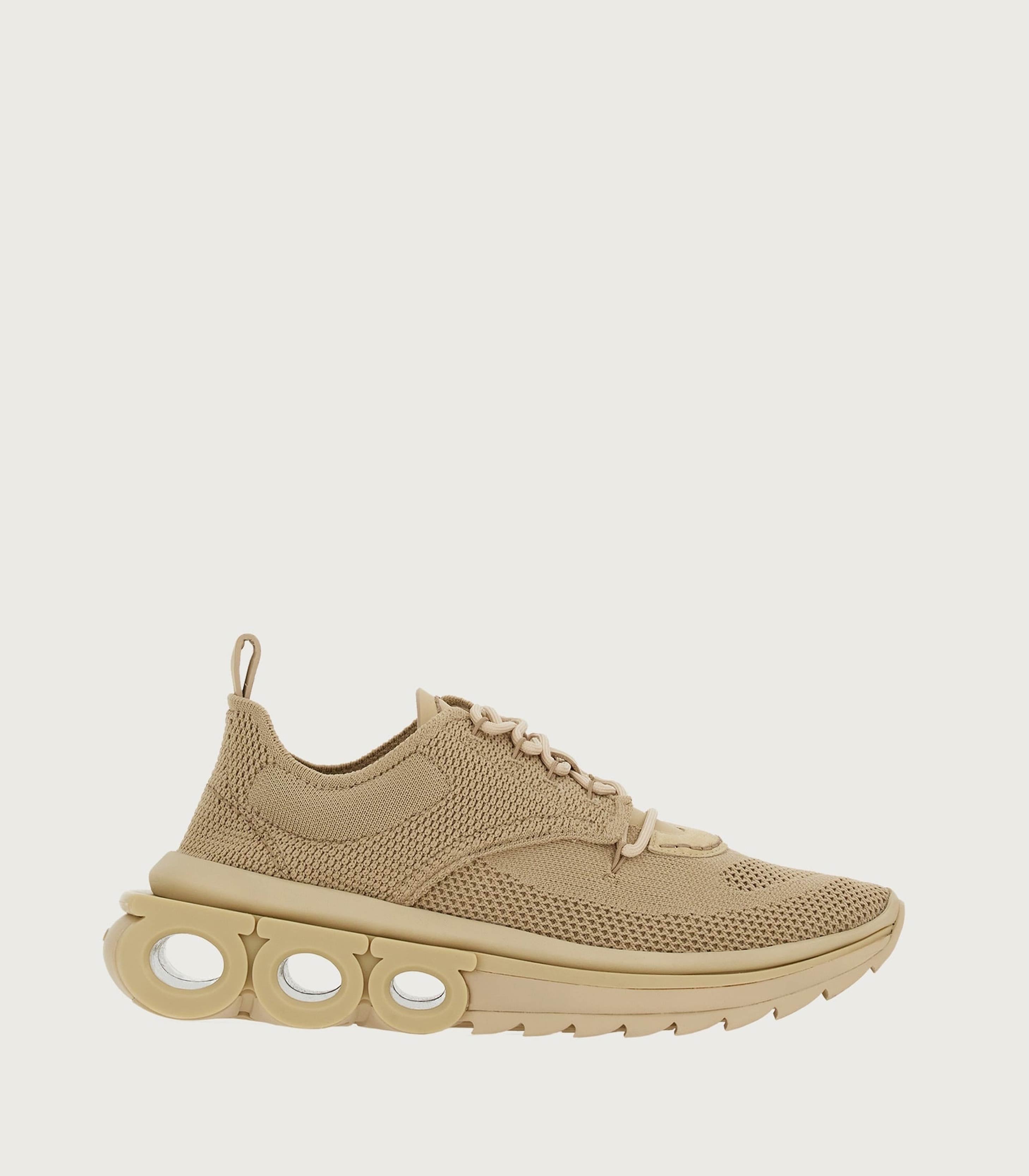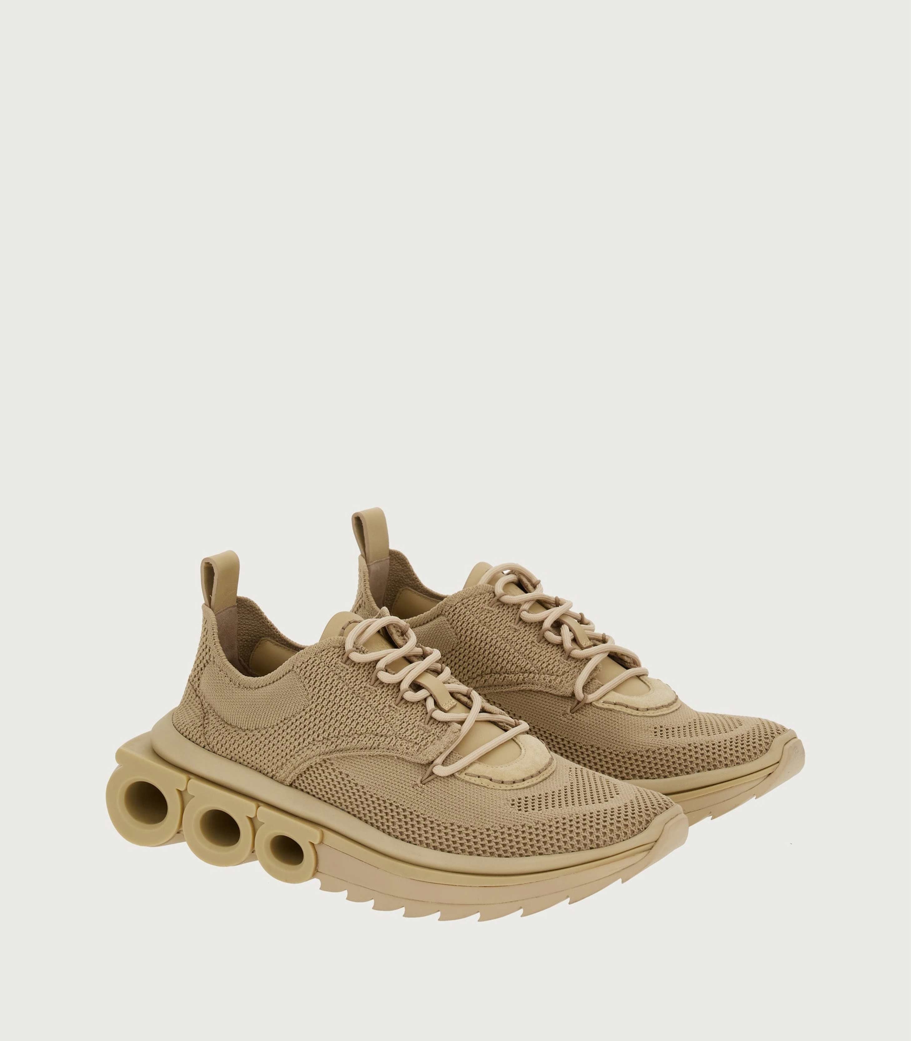 • Designed with recycled technical knit with suede and nubuck detailing, this pair offers a soft, second-skin-effect upper with a sole featuring branded details and Gancini details on the sides that create a filled-and-void effect.