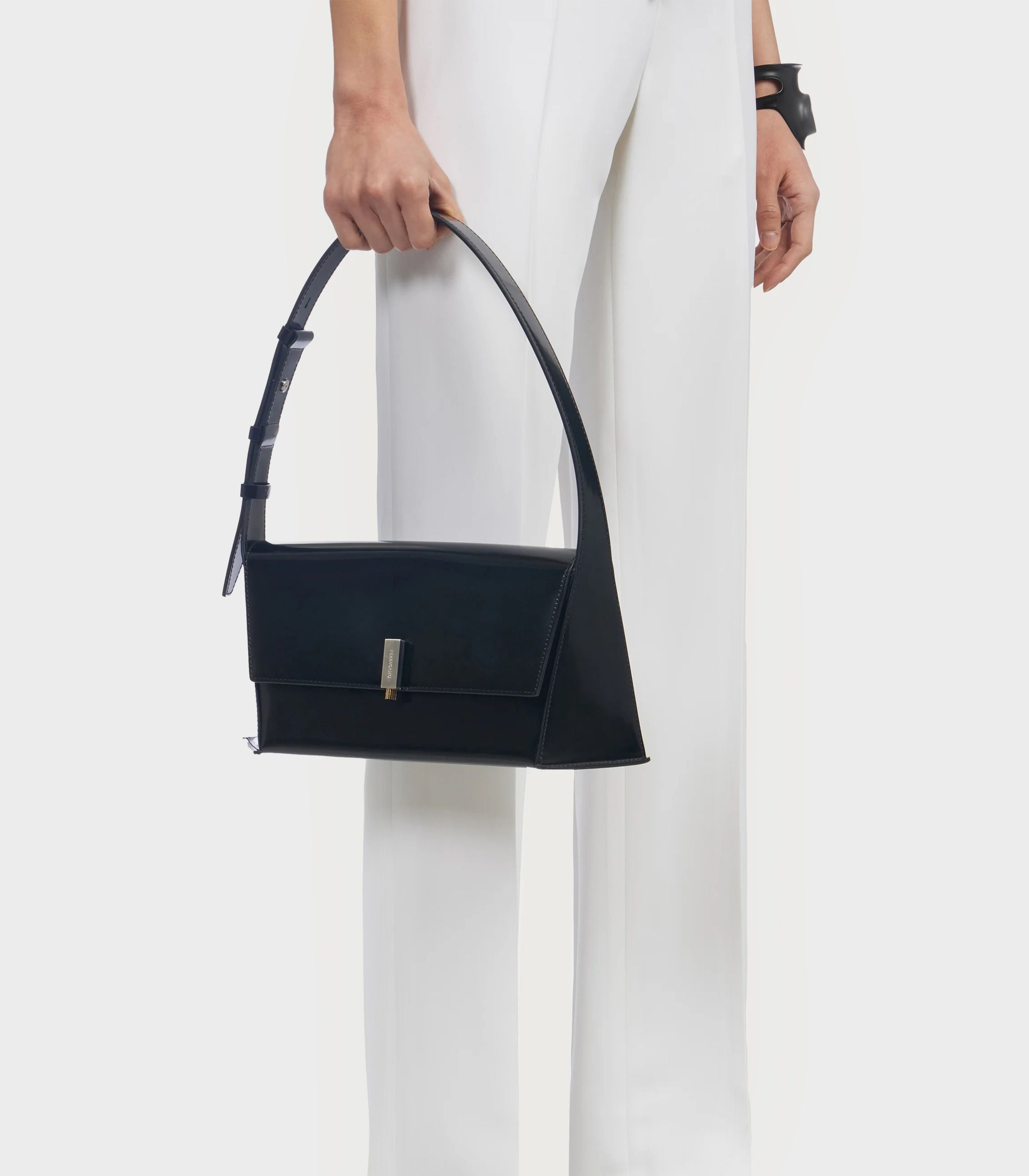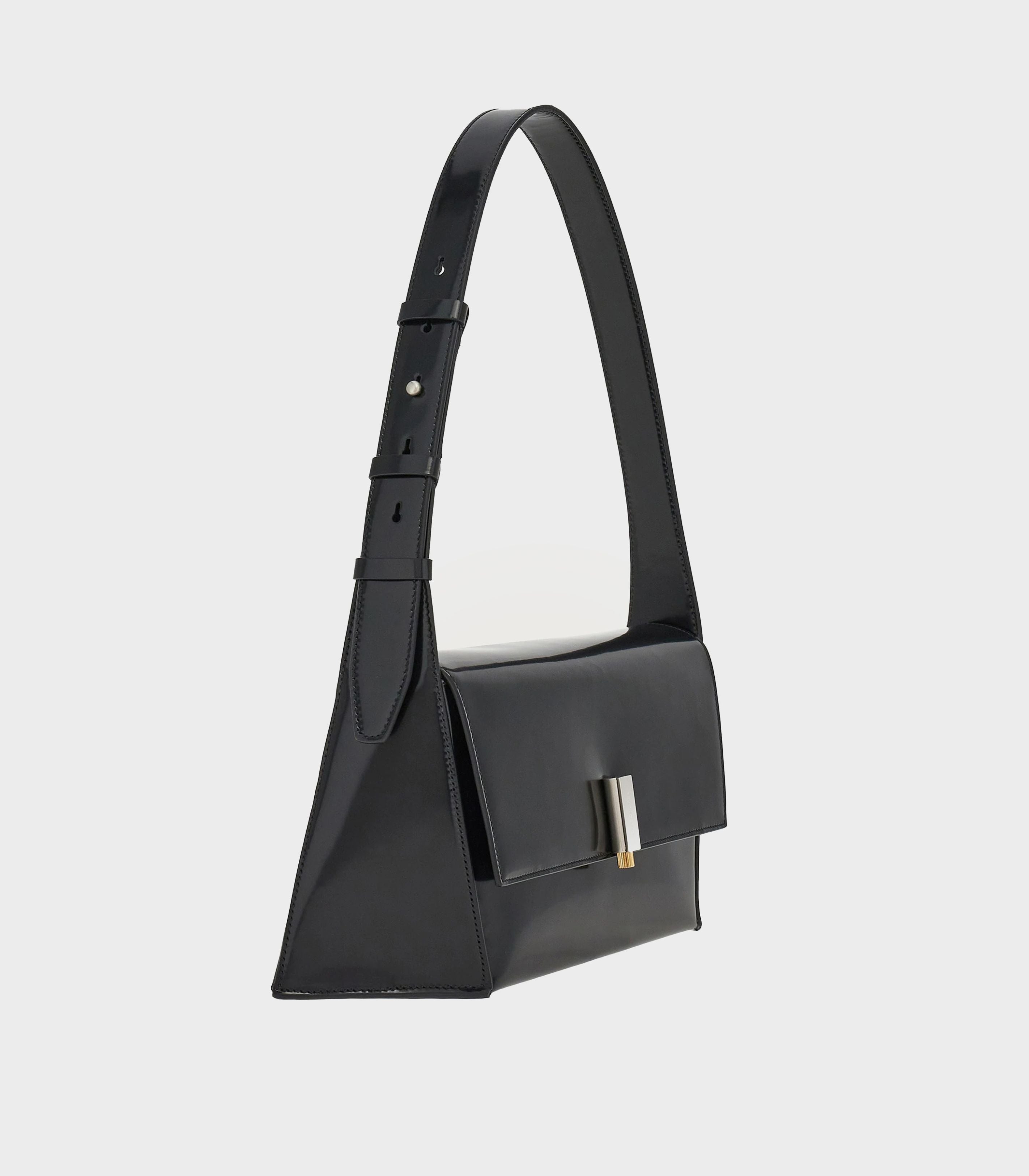 • A new take on the shoulder bag flaunting geometric lines and sculptural allure.