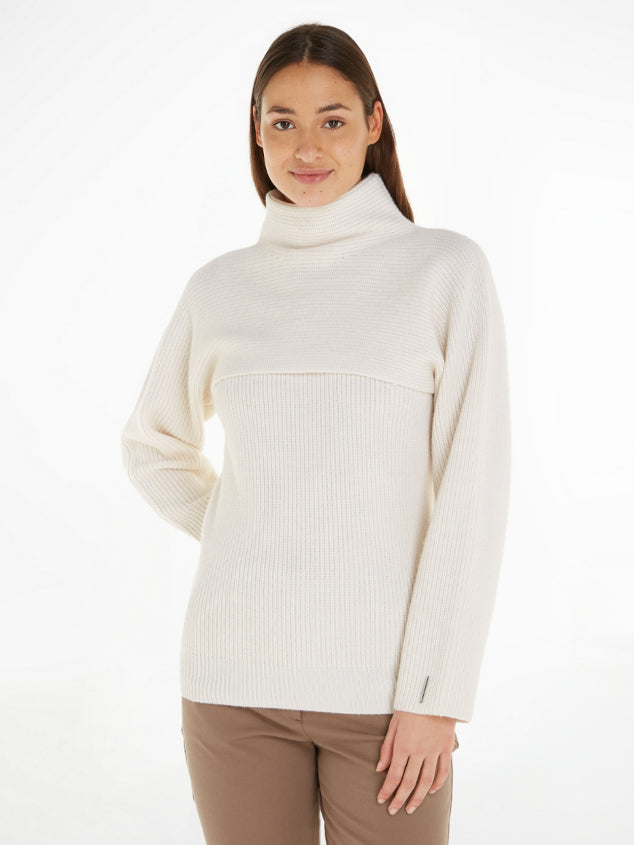 • Calvin Klein - Women's Recycled Wool Overlay Sweater Relaxed Fit