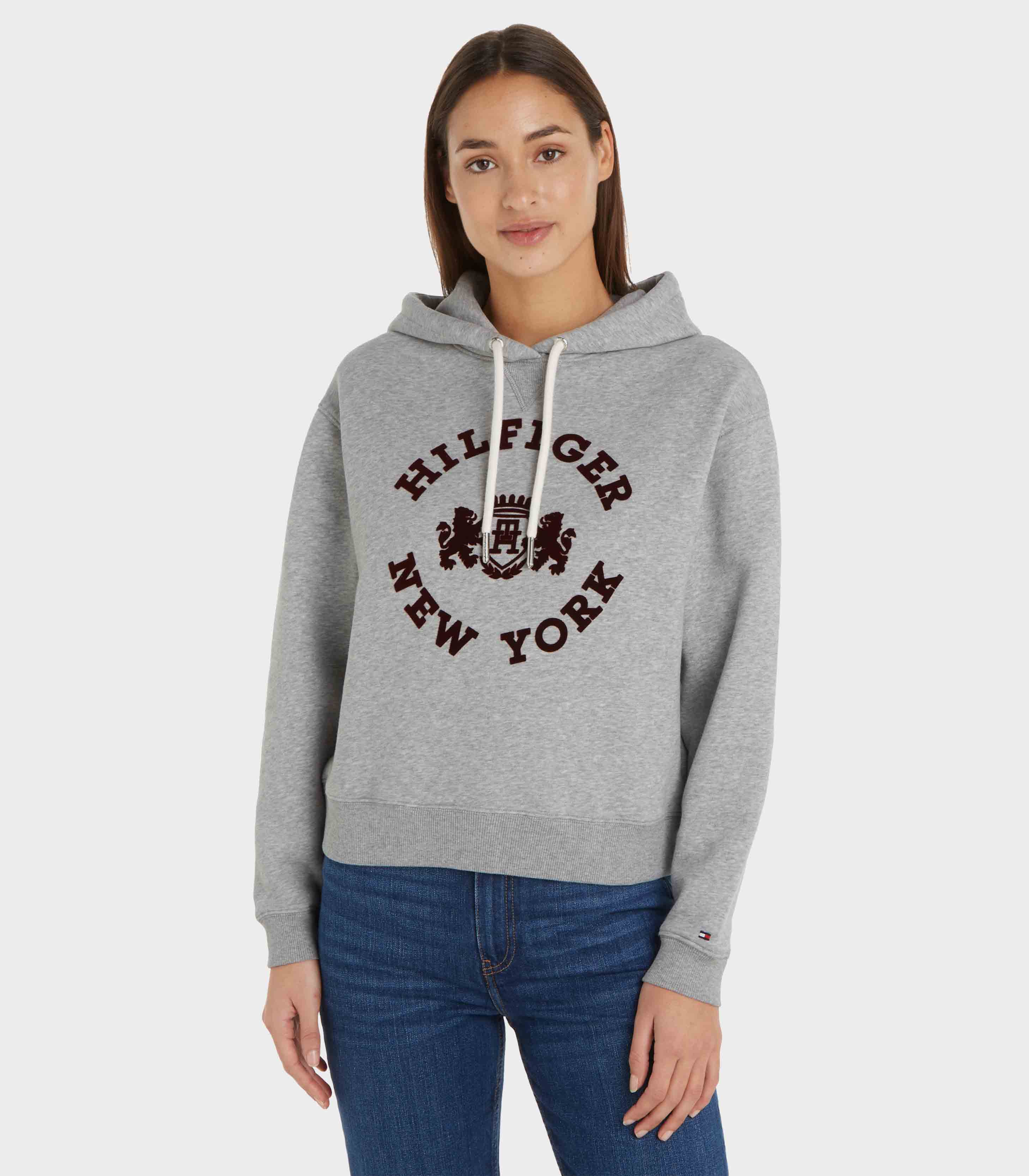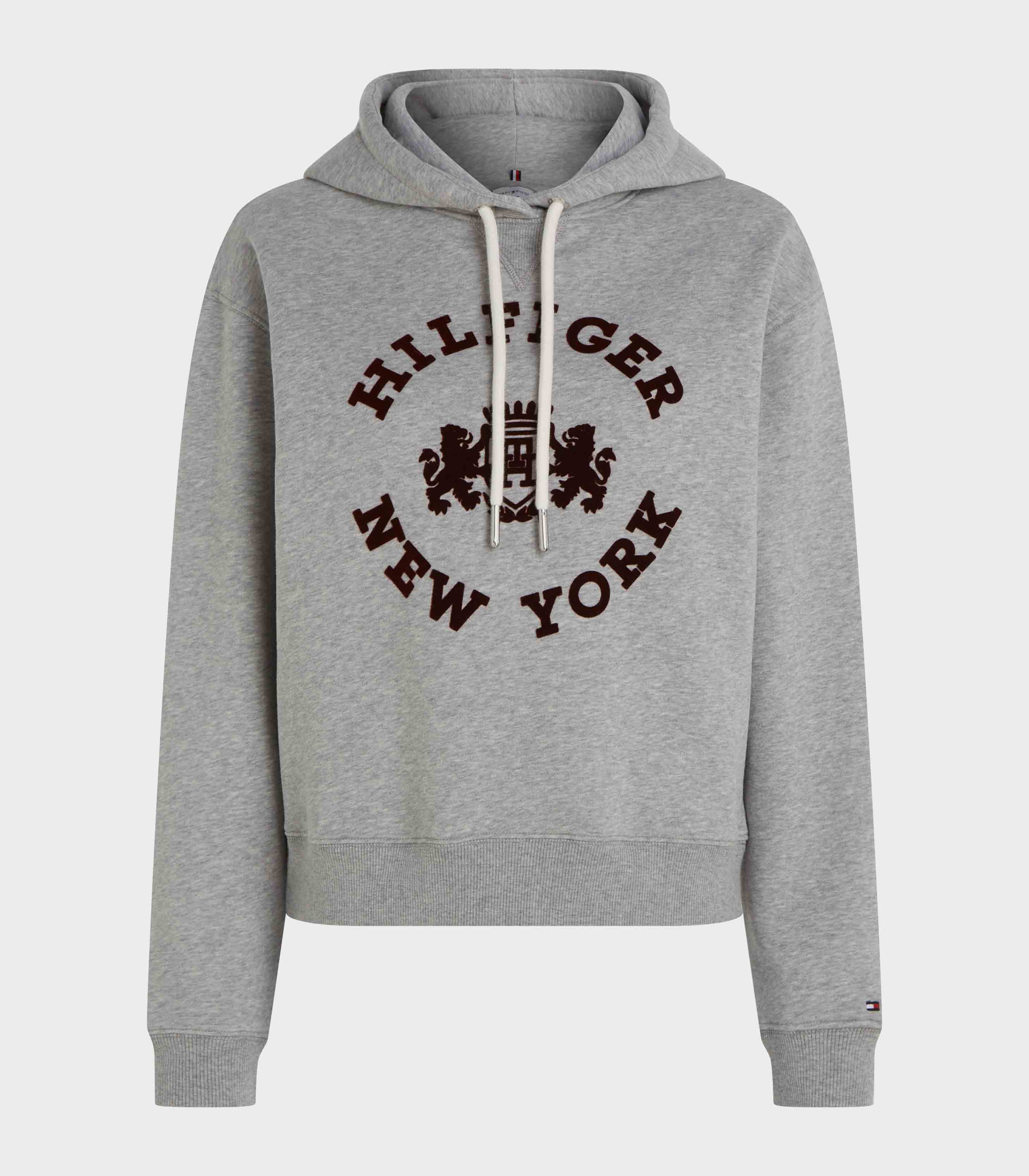 Tommy hilfiger - reg varsity flock hoodie , s , light grey htr , style ww0ww39800