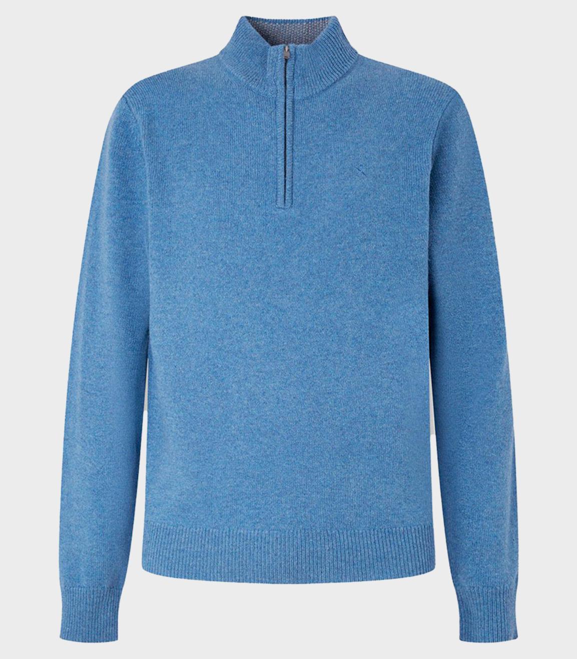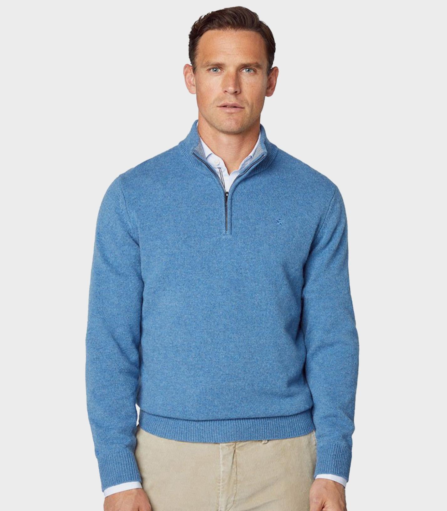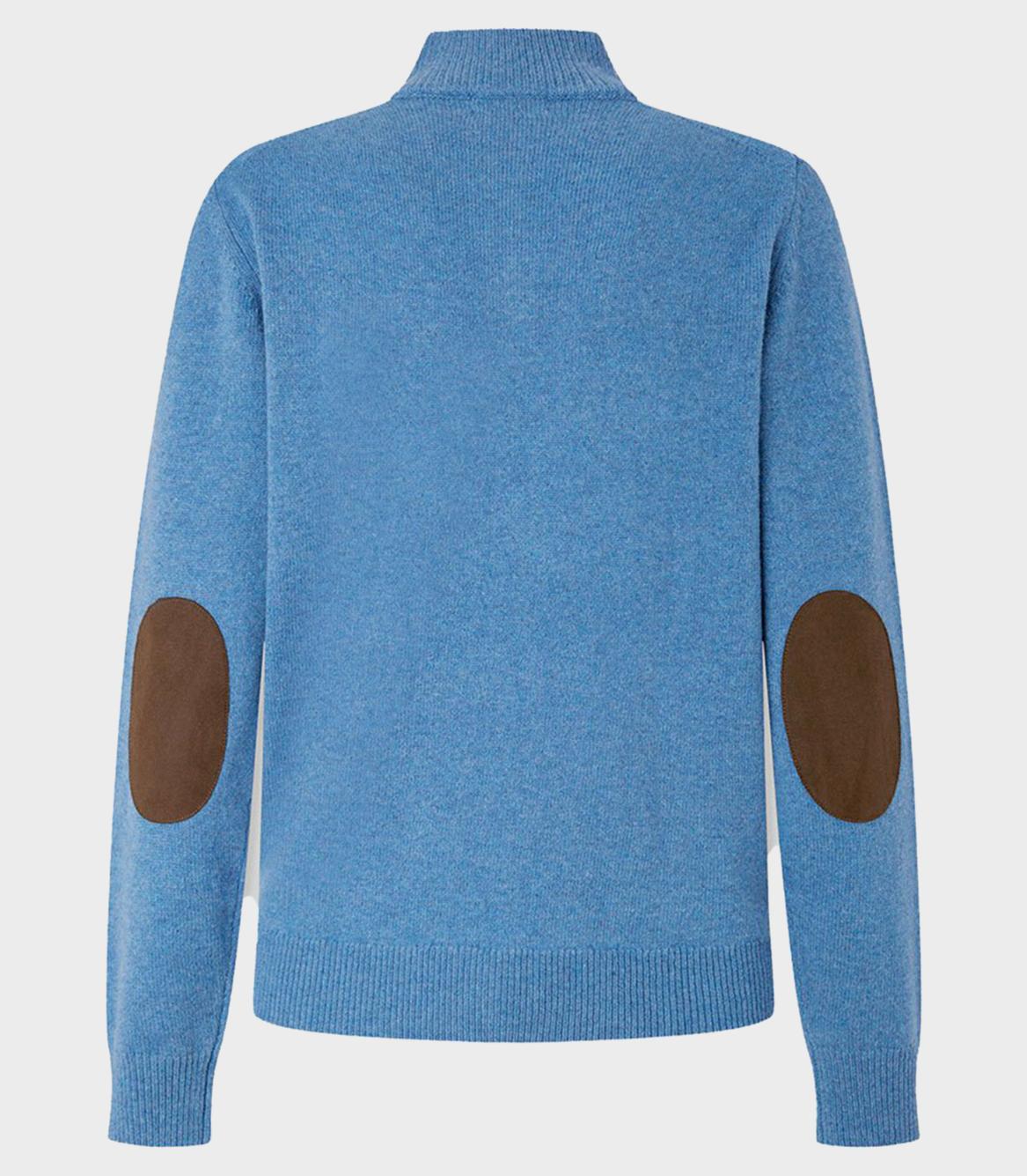 • In pure lambswool, this half-zip turtleneck is extremely soft and comfortable against the skin. Details such as the ribbed collar, cuffs and hem to retain heat, and the elbow patches in contrasting colours make this garment a must-have in any man's wardrobe.