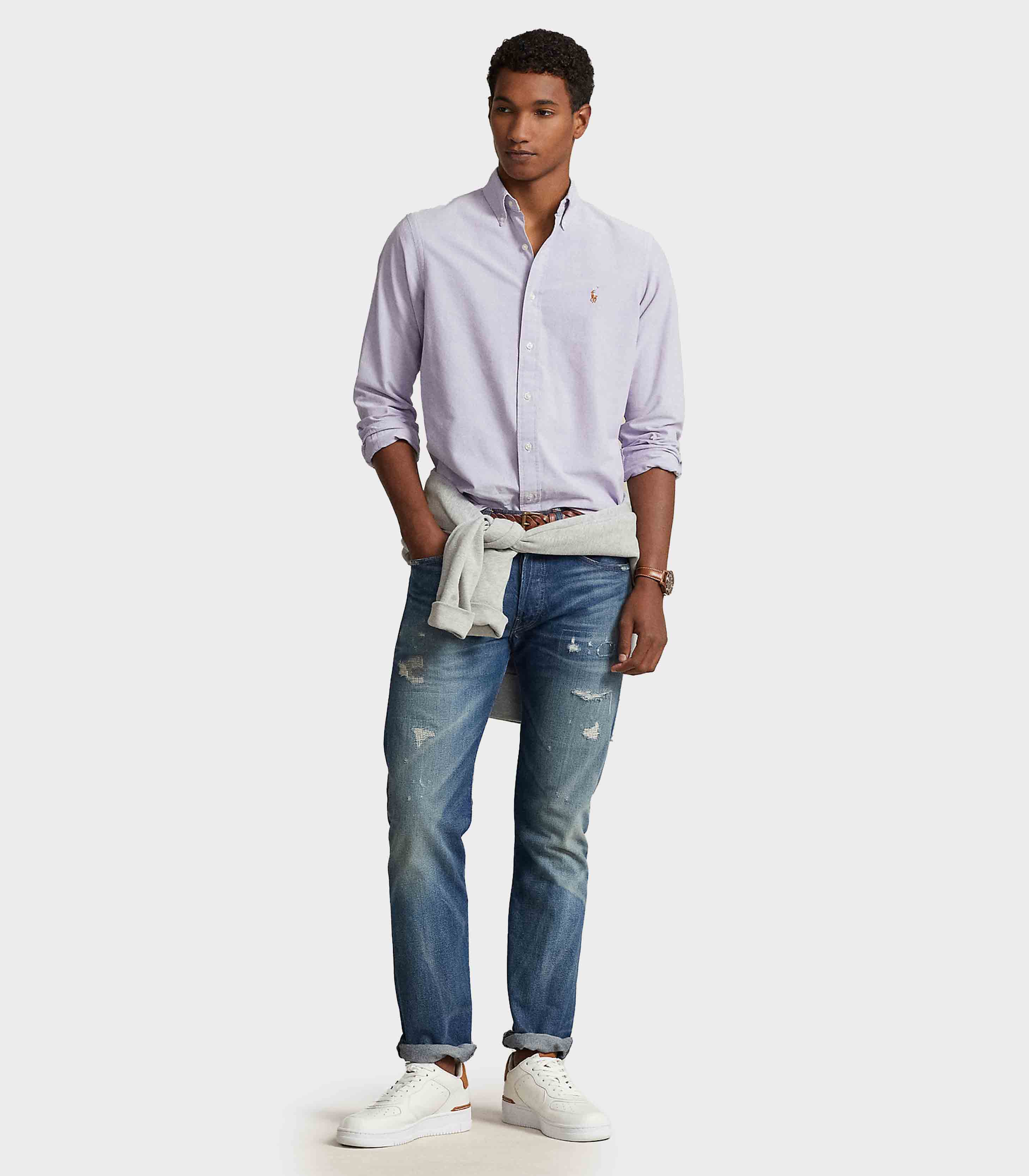 • The oxford shirt made its debut very early in Ralph Lauren’s designs, and since then, it has solidified its status as a pillar of the Polo look. Our fabric is developed with a secret wash, giving it instant character, ease and a heathered softness – what we refer to as the perfect "rumple". The formula is so unique that it’s been kept in a safe for more than three decades. Today, Mr Lauren continues to create countless variations of his iconic shirt, including this Custom Fit version, which is embroidered with our multicoloured signature Pony.