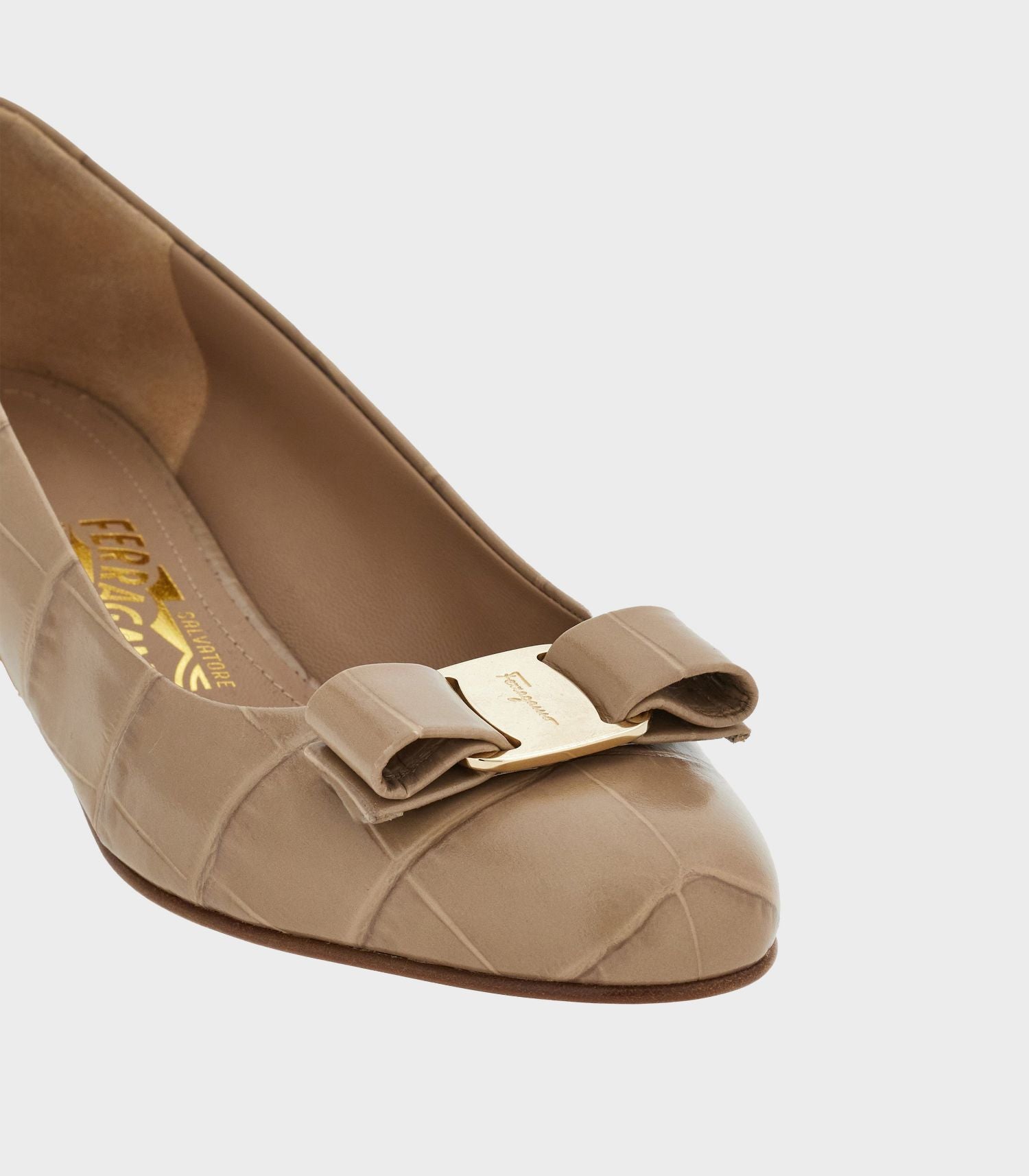 • Ferragamo's ballet flats are topped with the label's signature Vara bow for playful charm.