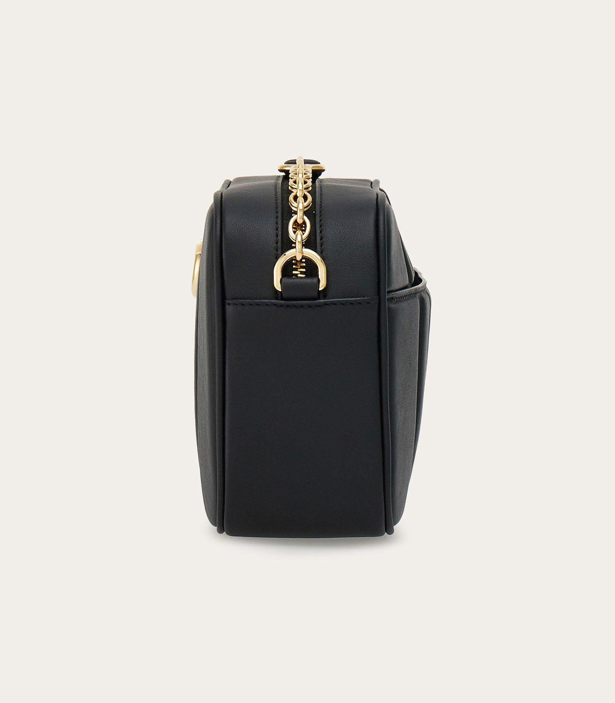 • Complete with metal zip, it is complemented by the new Gancini on the front and the adjustable and detachable shoulder strap.