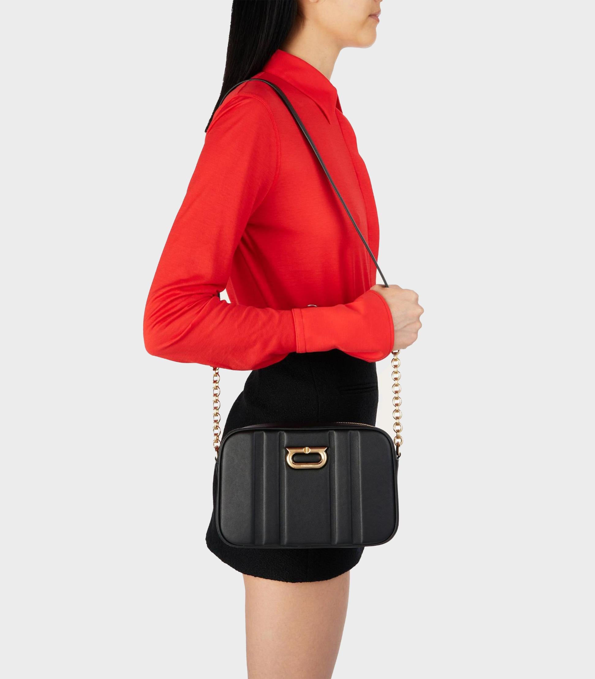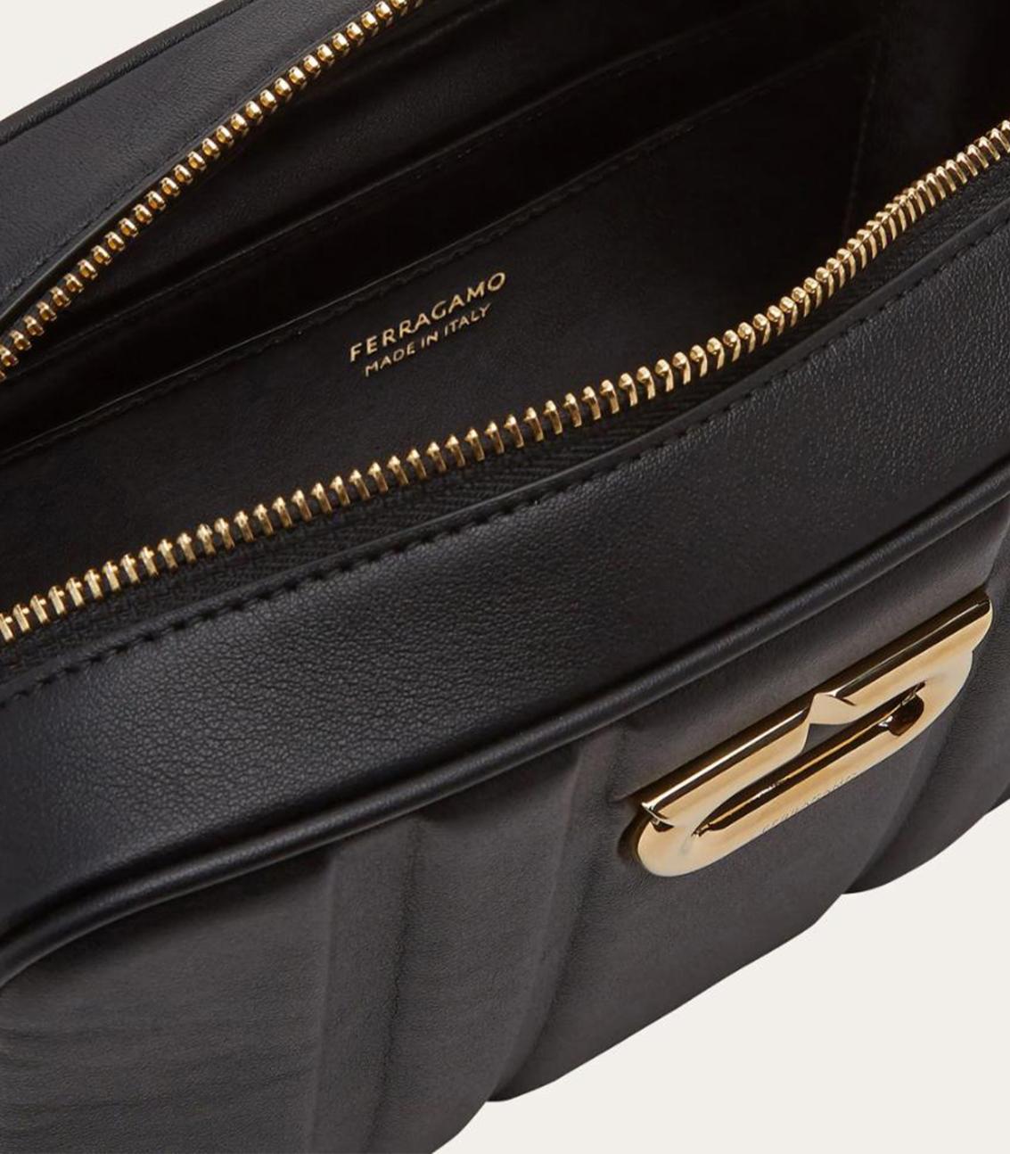 • A new Ferragamo model for this camera bag with geometric quilting and padding.