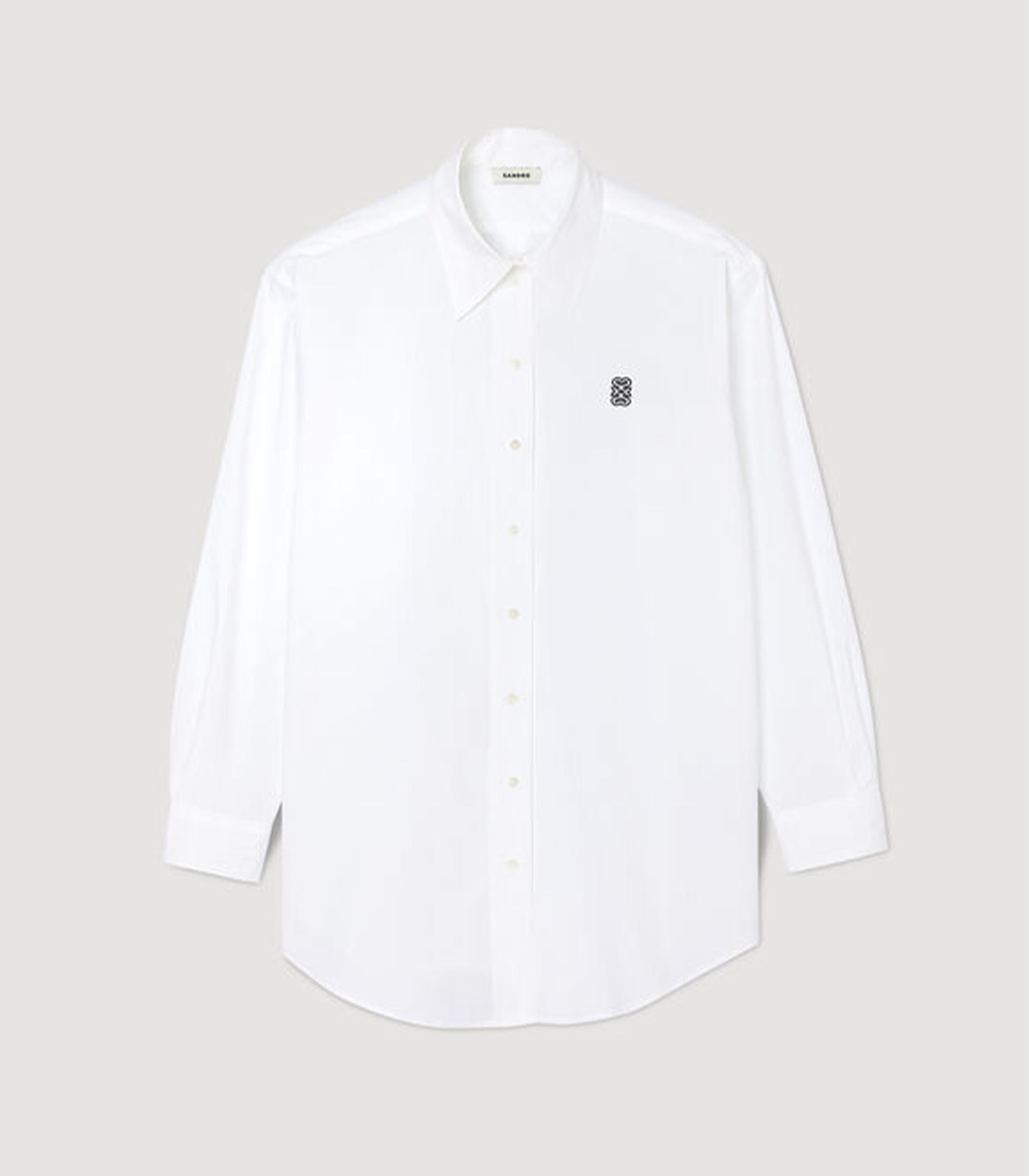 • Oversized cotton shirt with a collar, long sleeves, and a button fastening, decorated with a contrasting double S logo embroidered on the chest.