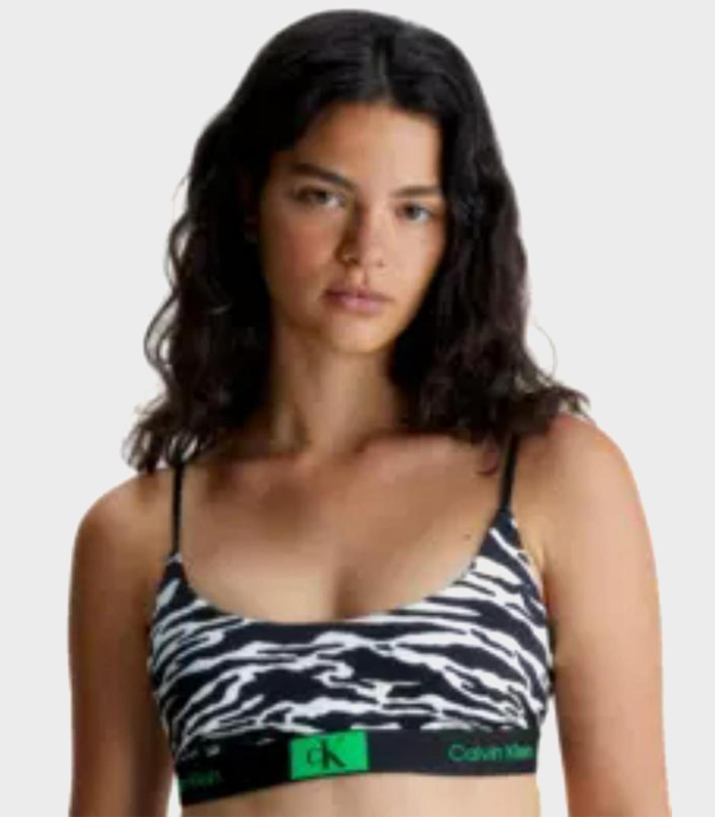 Calvin klein - lght lined bralette , s , split tiger print - black , style 000qf7245e