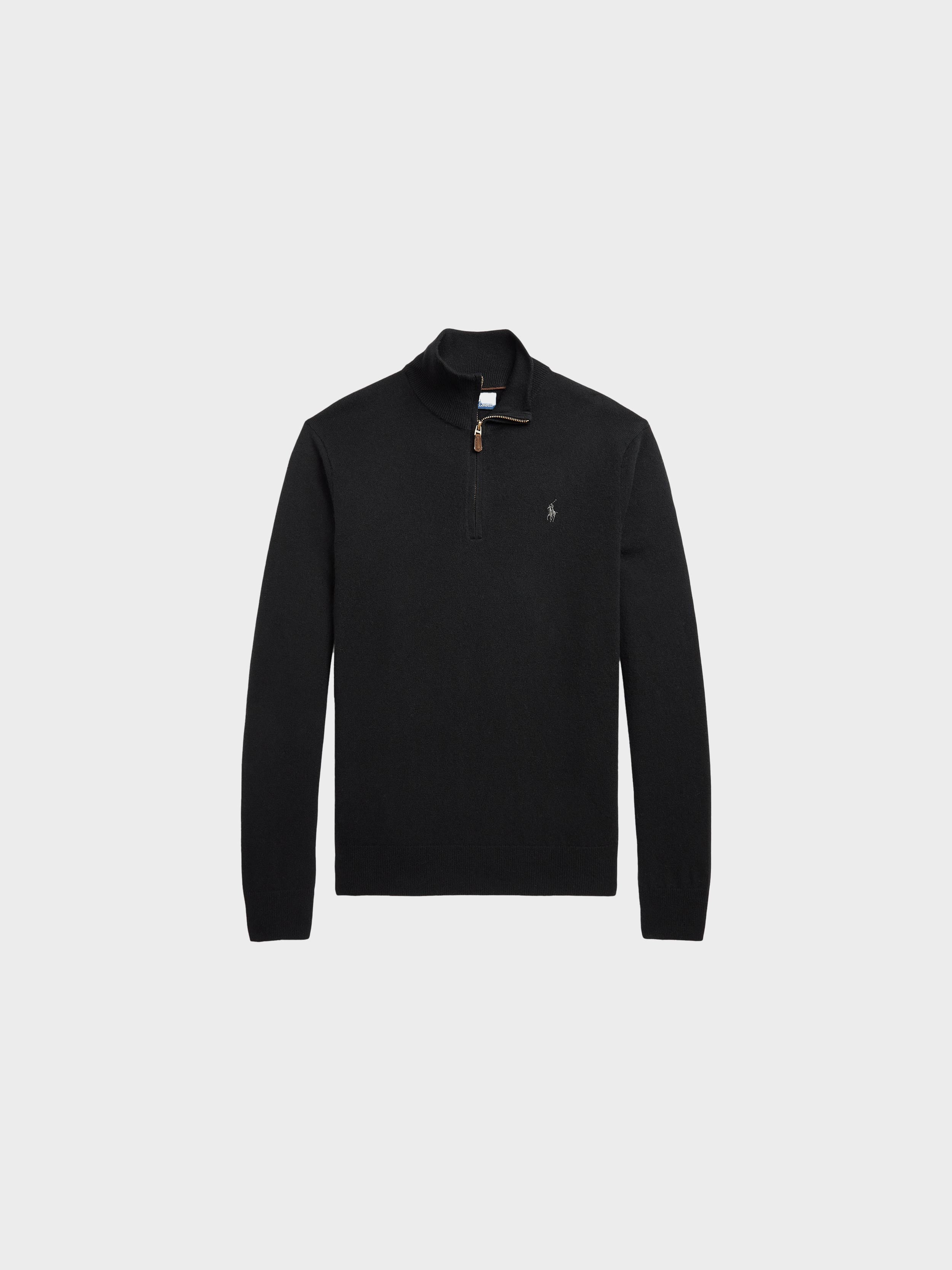 • Luxurious Italian wool and our signature embroidered Pony elevate this quarter-zip jumper.