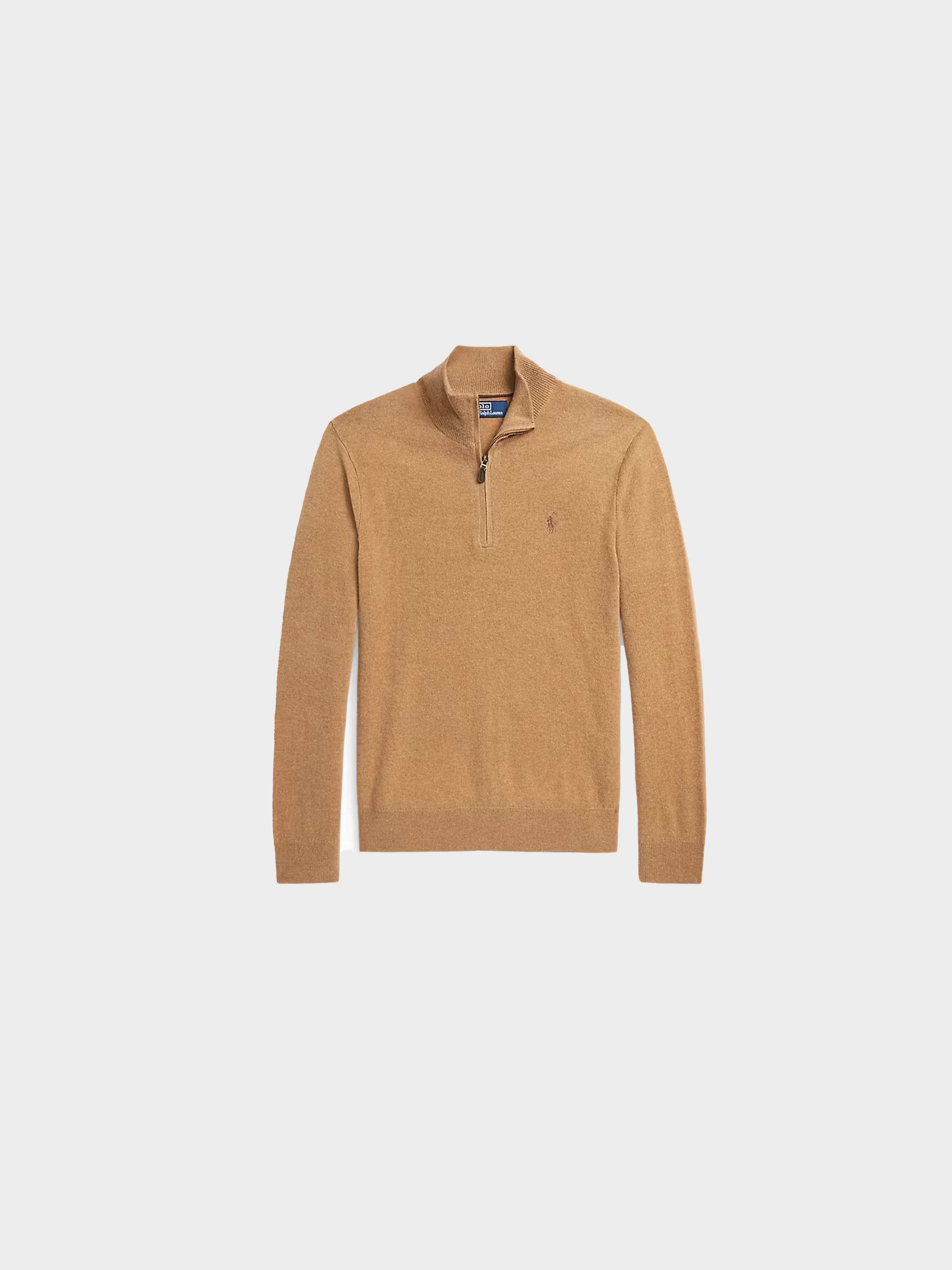 • Luxurious Italian wool and our signature embroidered Pony elevate this quarter-zip jumper.