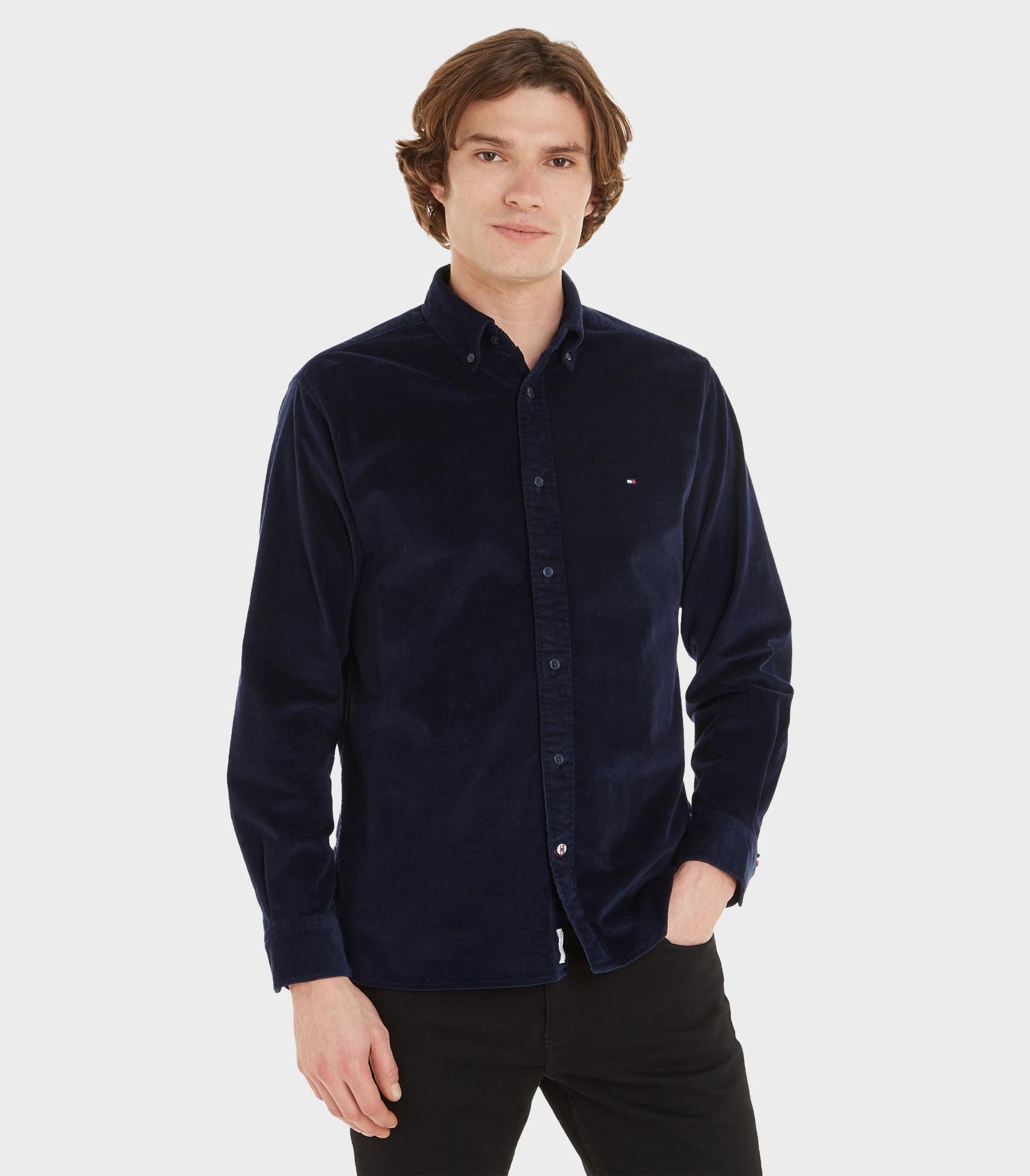 Tommy hilfiger - flex solid corduroy rf shirt , xs , desert sky , style mw0mw32931