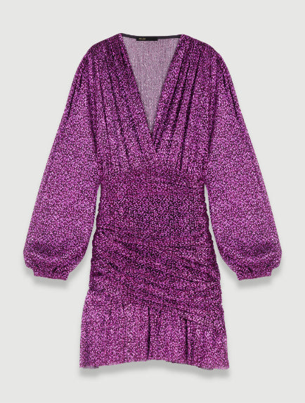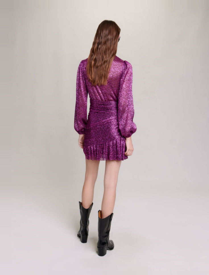 • Elegance for all occasions: this short, shimmering, softly draped dress is perfect for any occasion. With long sleeves and a wrap neckline, it catches the light and sets off your look with daring and sparkle. Fitted at the waist, its skirt is lightly pleated at the bottom to create a light, tailored silhouette.