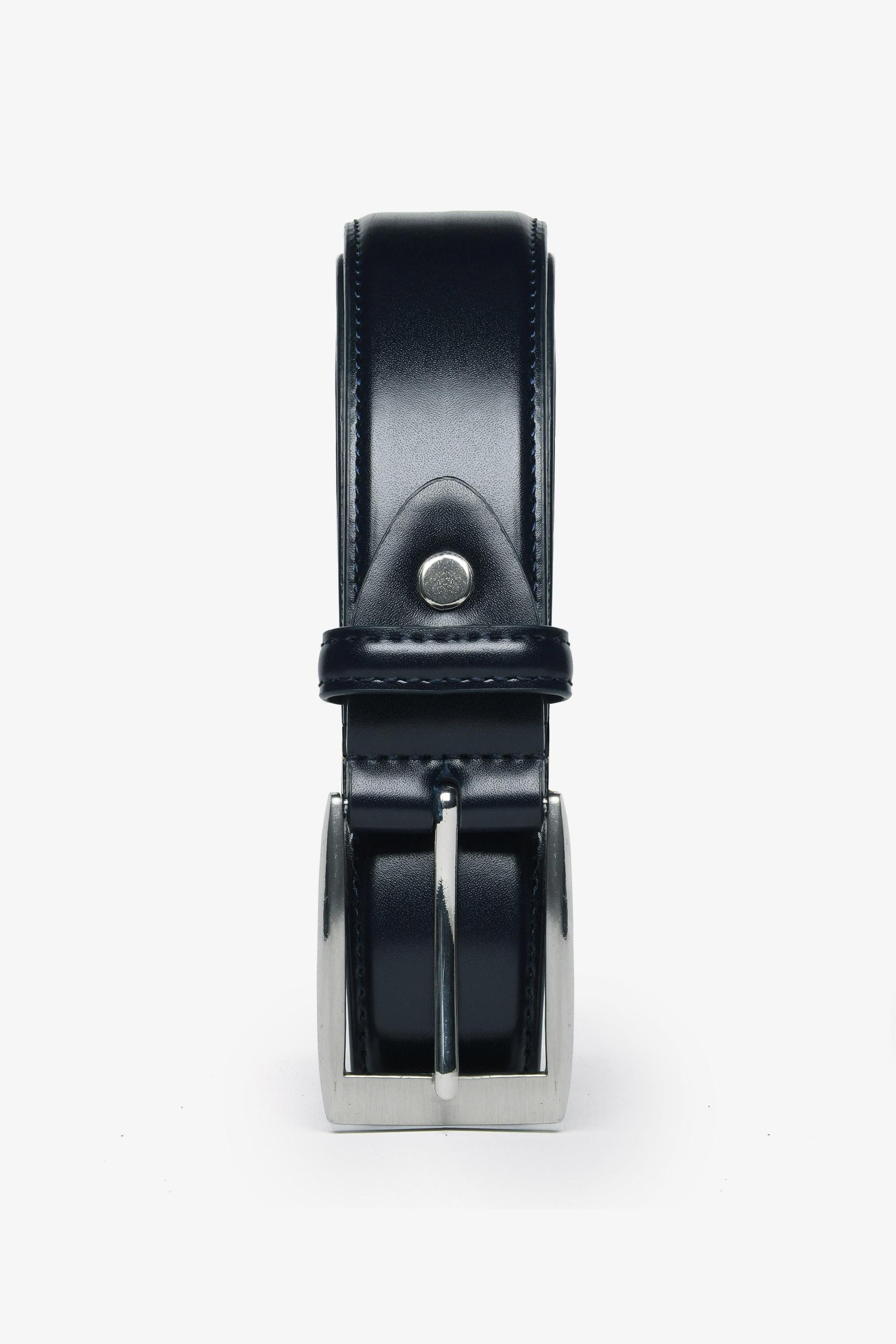 • Classic belt made of glossy eco-leather - square metal buckle