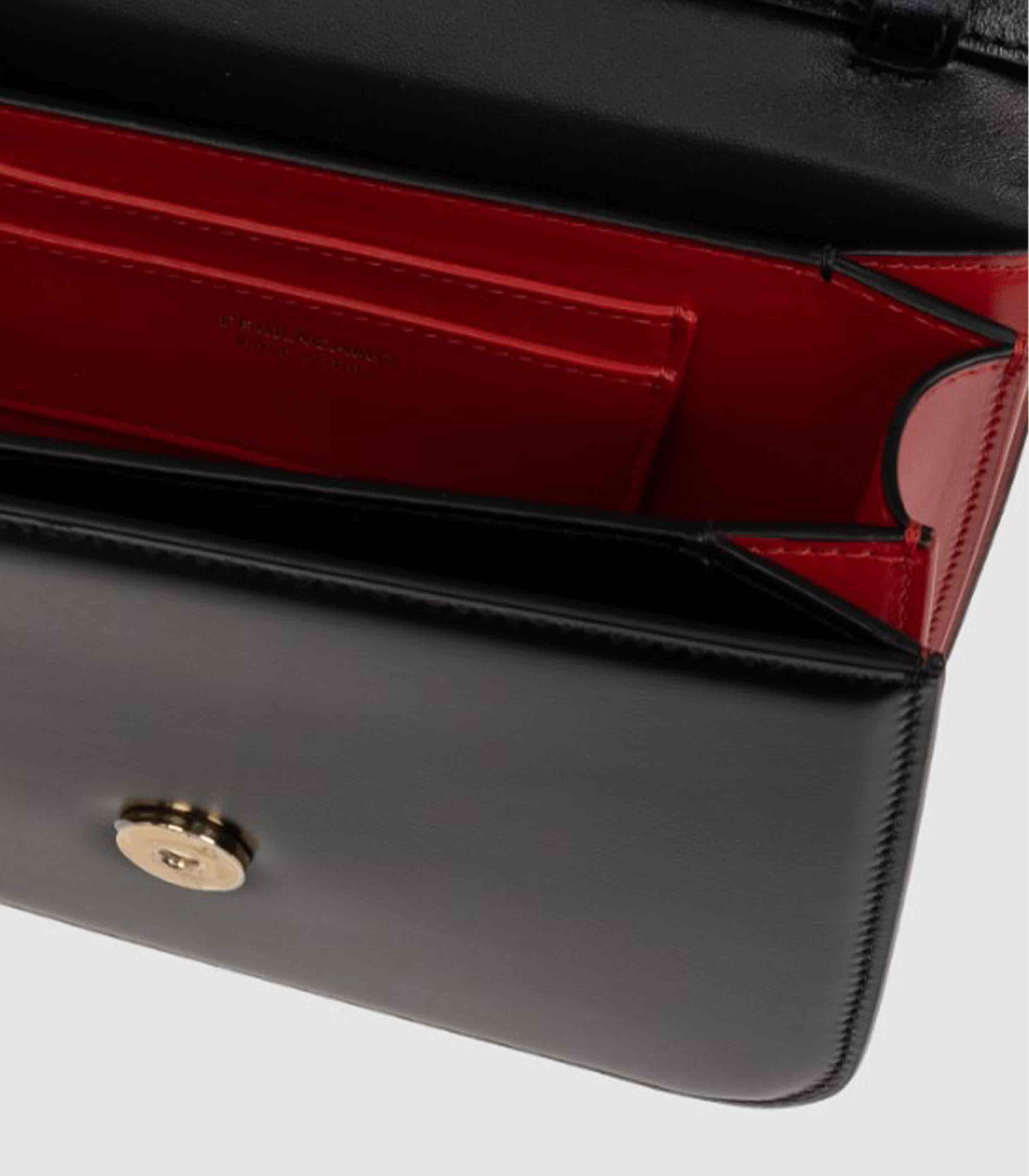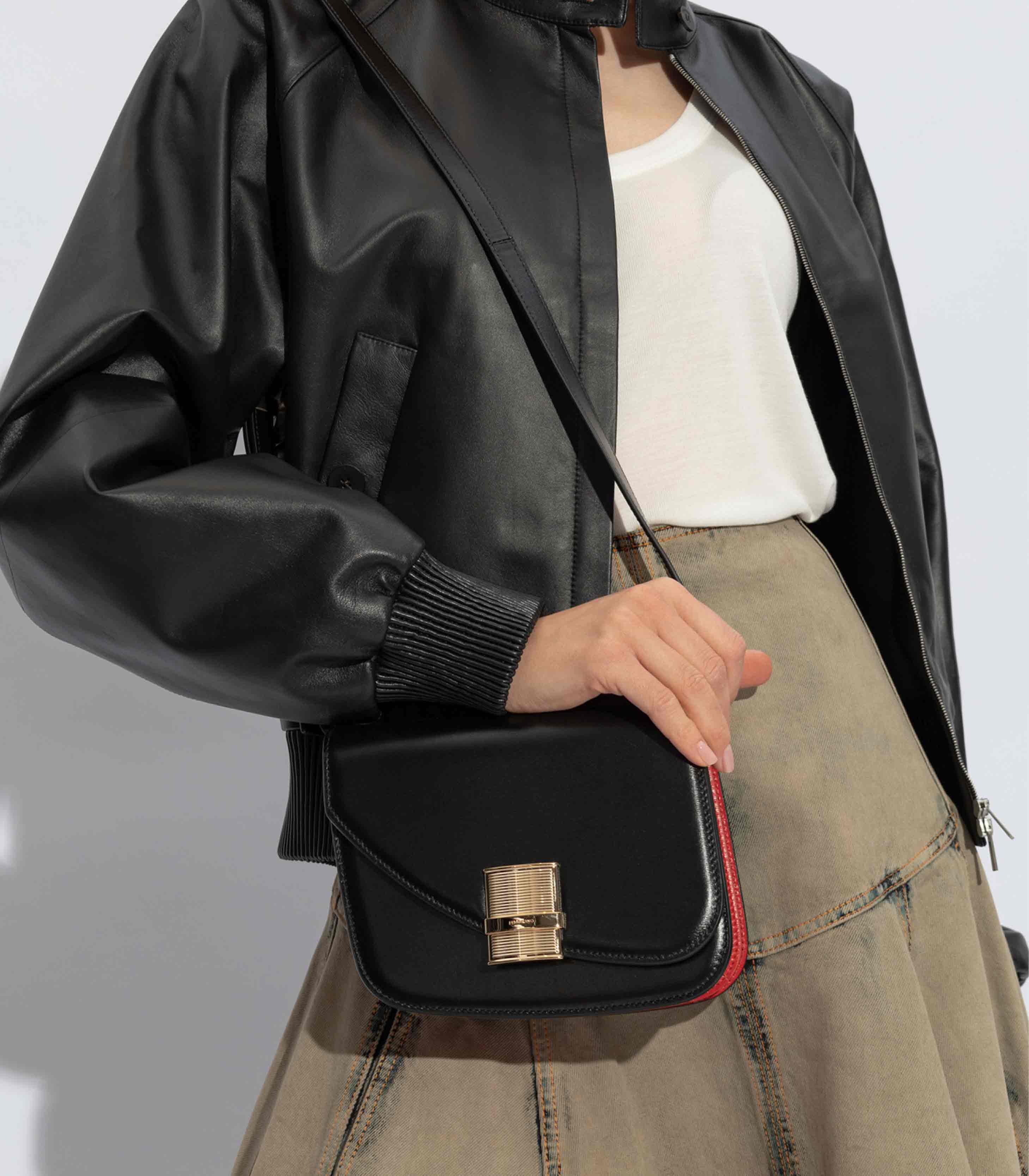 • This elegant design is designed with an asymmetric front flap that is fastened by an iconic clasp.