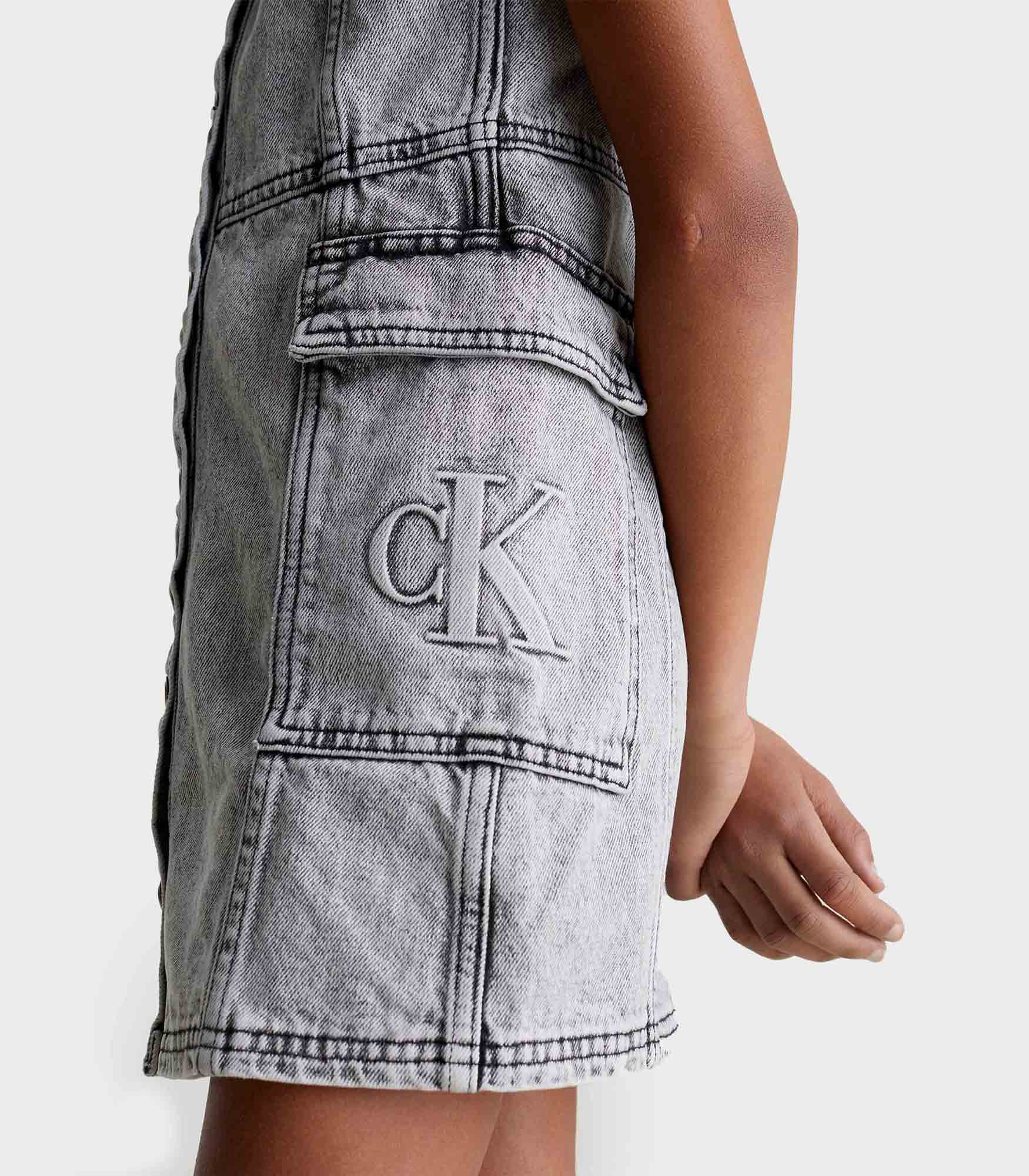 Calvin klein - stone grey ss denim dress , 6 , stone light grey , style ig0ig02284