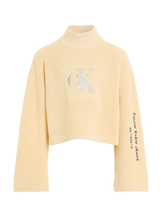Calvin klein - metallic mono rollneck sweater , 10 , vanilla , style ig0ig02324