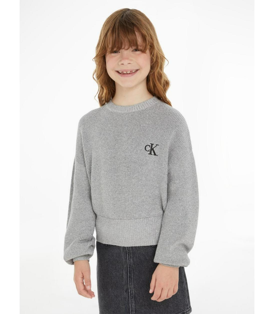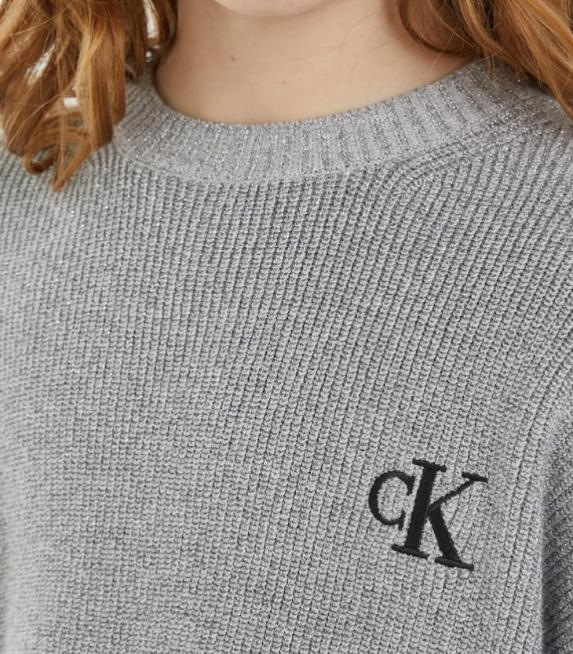 Calvin klein - festive lurex sweater , 6 , light grey heather , style ig0ig02327