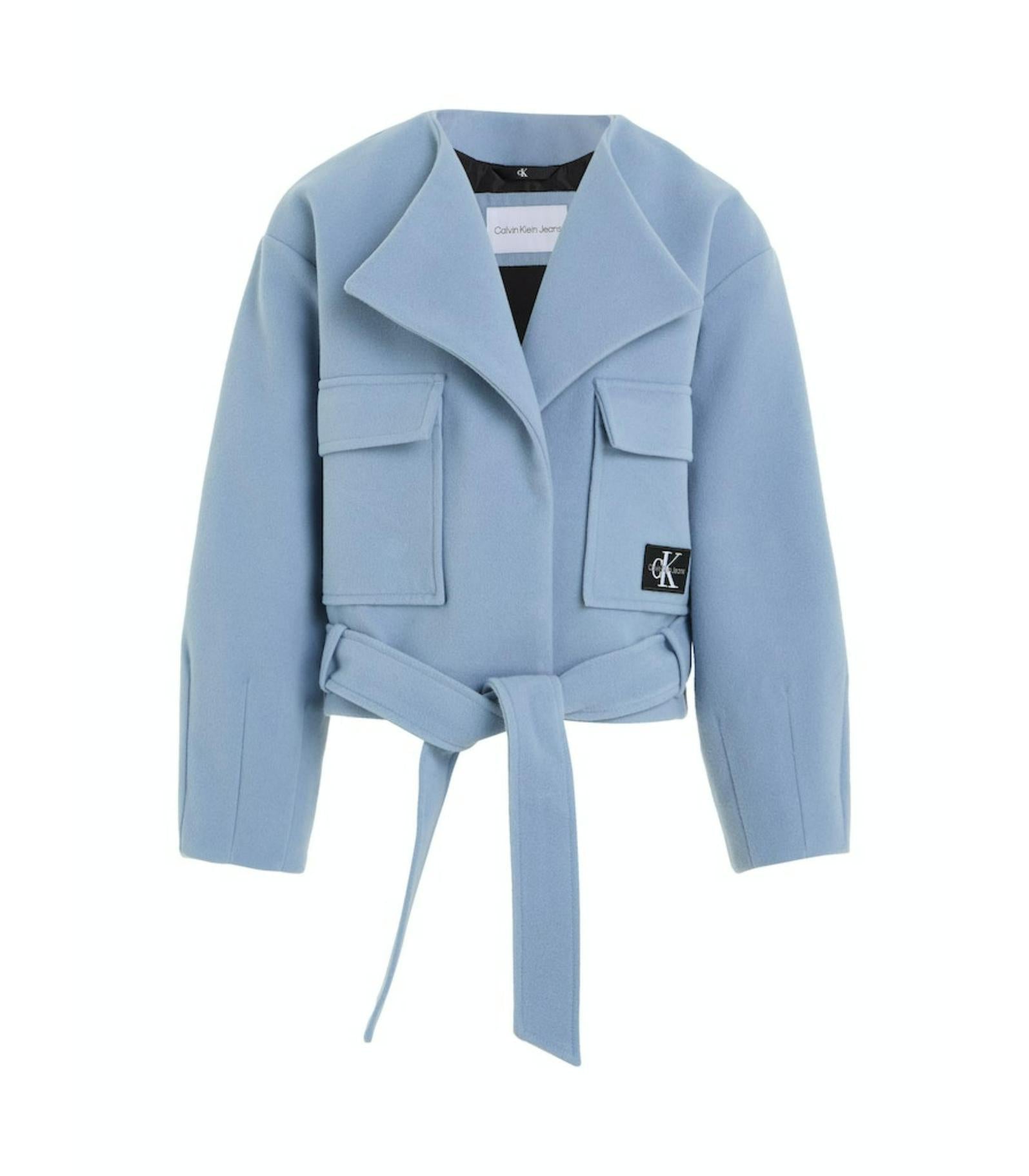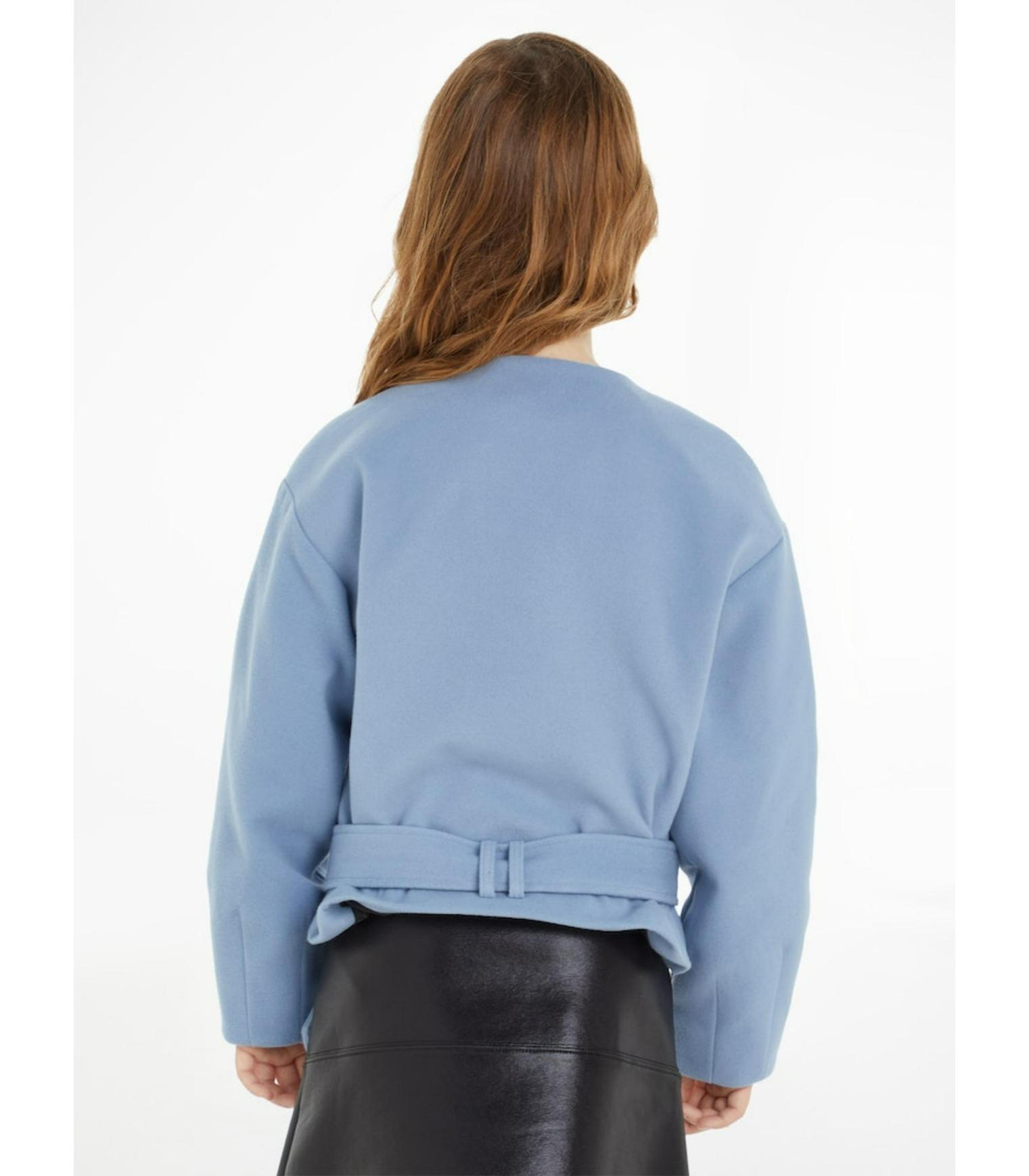 Calvin klein - wrap felt jacket , 6 , faded denim , style ig0ig02334
