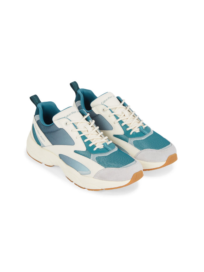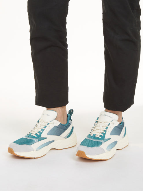 Calvin klein - retro tennis low mix in sat , 44 , deep teal/creamy white , style ym0ym00877
