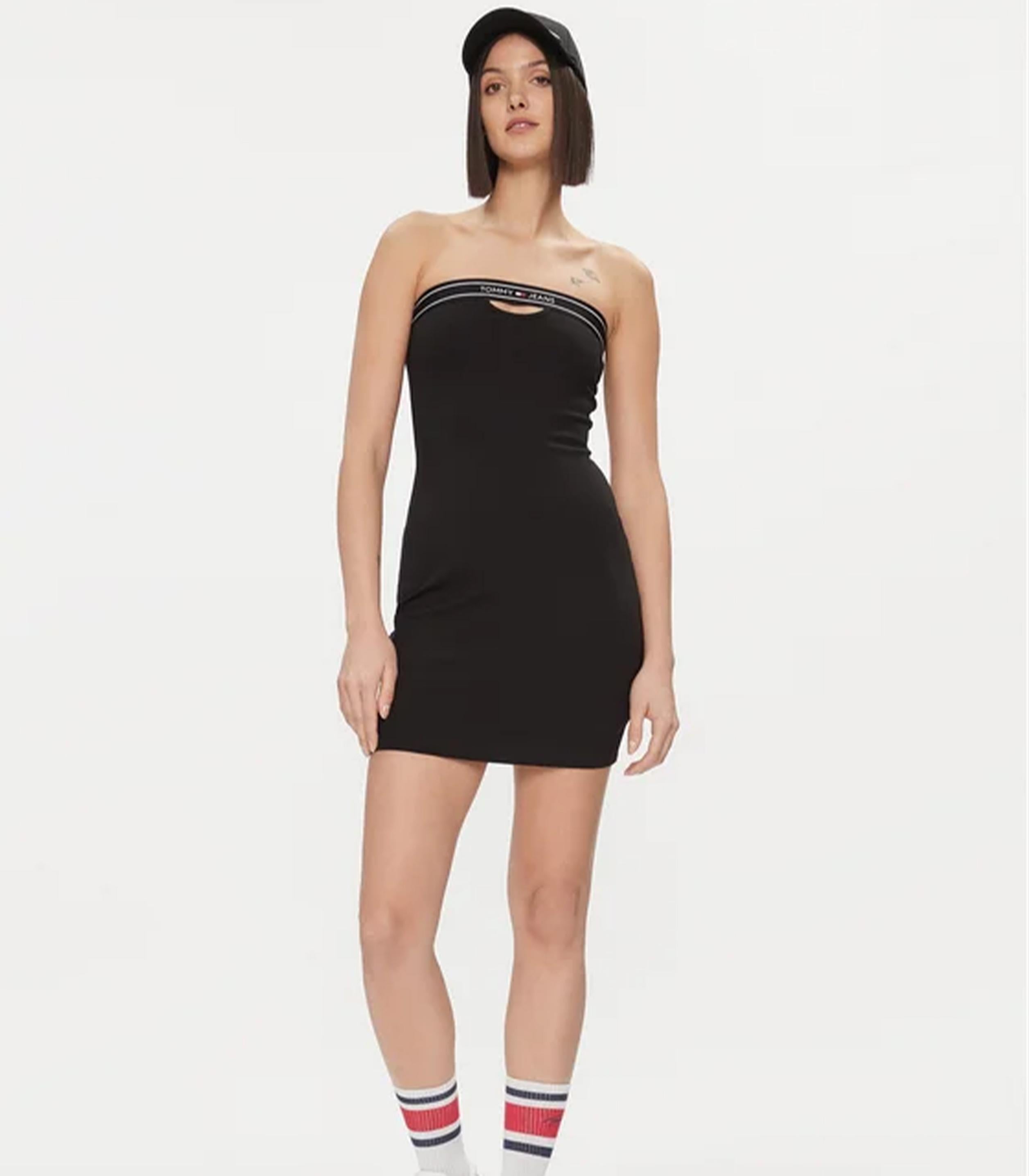 Tommy hilfiger jeans - tjw taping cut out bandeau dress , xs , black , style dw0dw17416