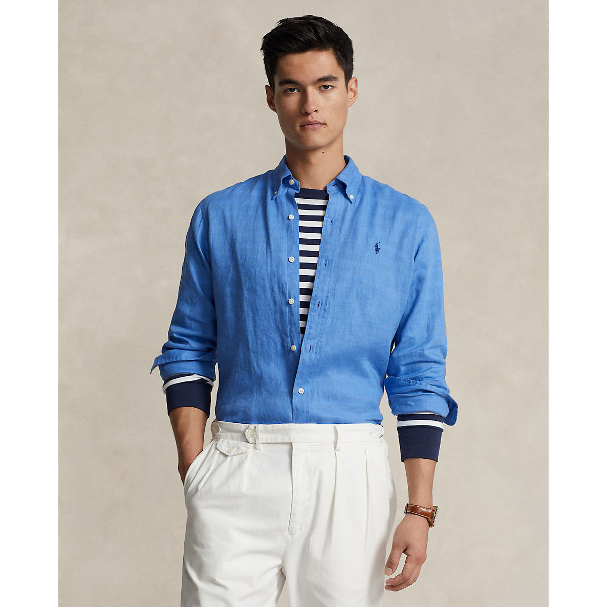 • A stylish choice for warm-weather days, this shirt combines a trim silhouette with lightweight, breathable linen.