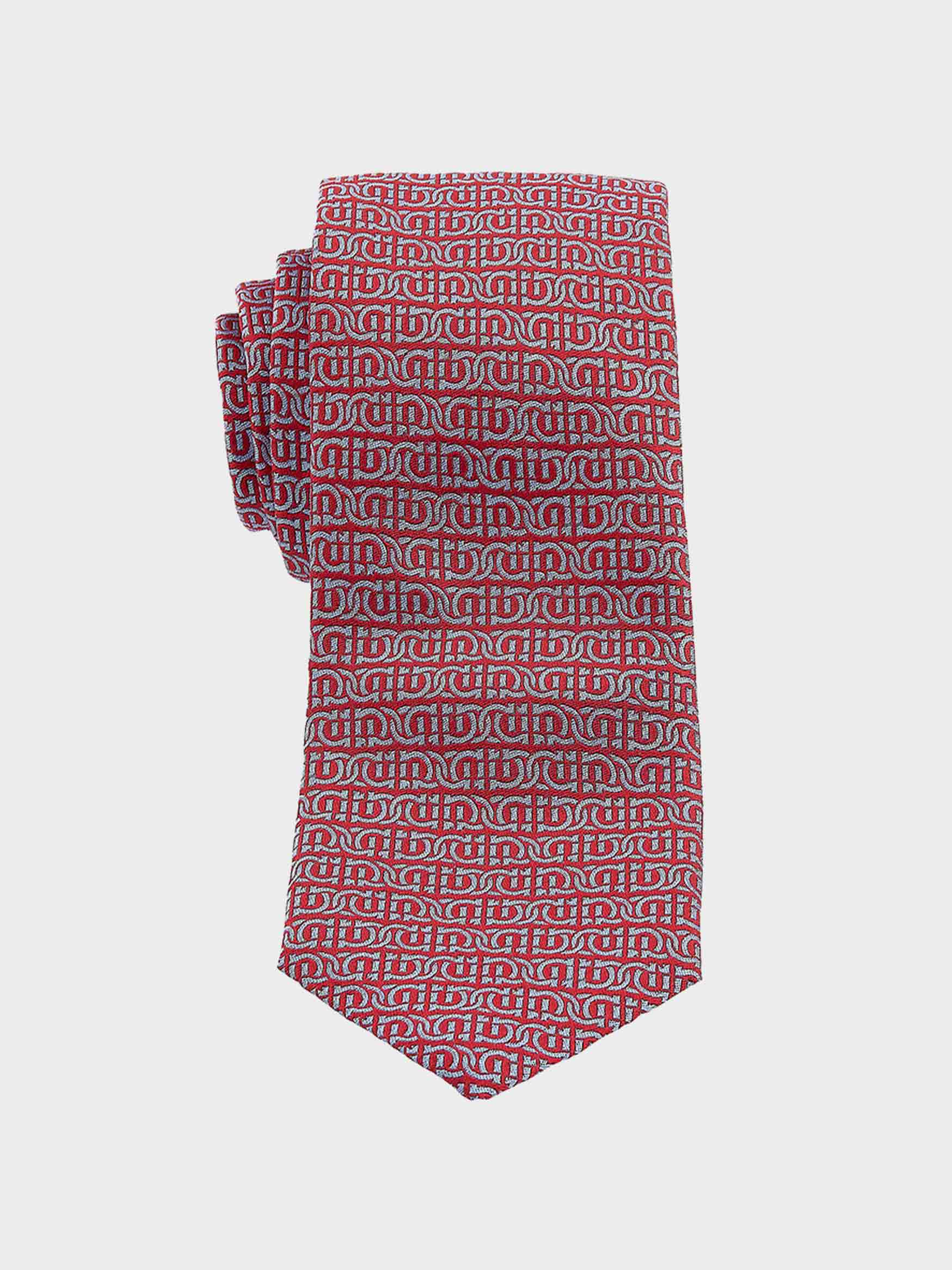 • he Ferragamo Gancini Print Silk Tie is a refined accessory crafted from luxurious 100% silk, showcasing the iconic Gancini motif that embodies timeless Italian elegance.