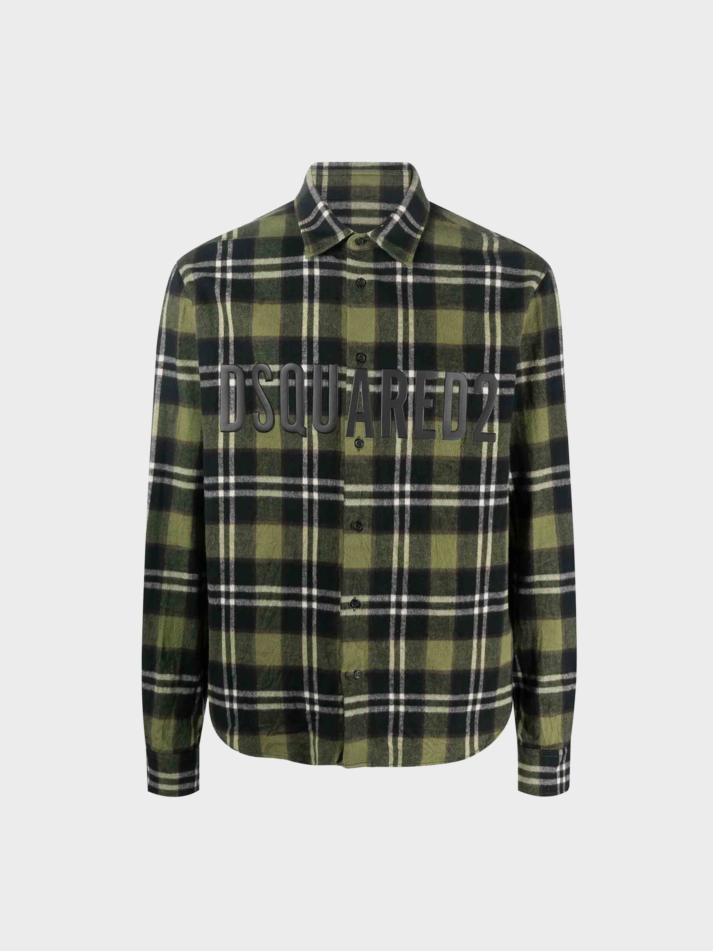 • Made of checked cotton, this style fastens with buttons and showcases the brand\'s logo in faux leather appliqué and long sleeves with button cuffs.