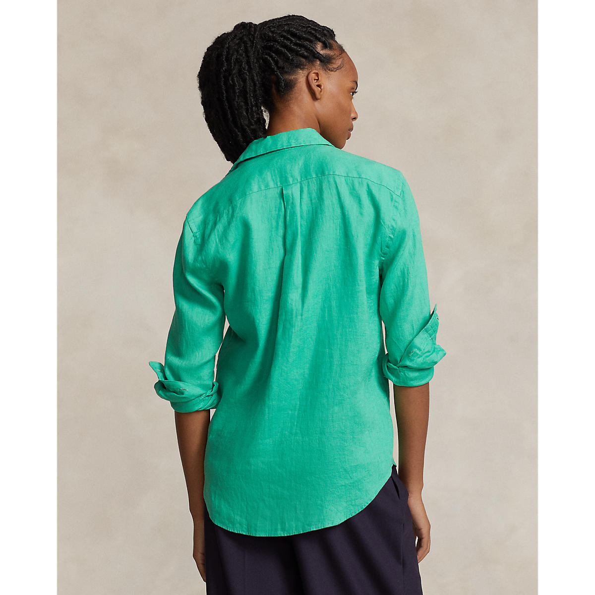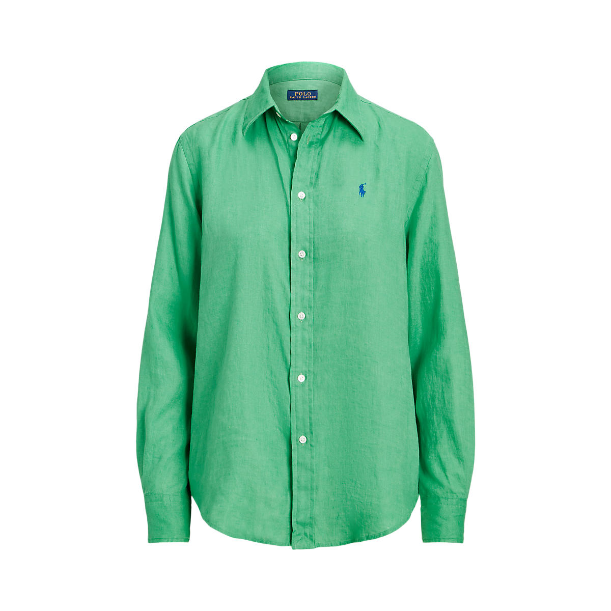 • This shirt unites airy linen with a relaxed silhouette and lustrous pearl buttons. Our meticulously embroidered Pony adds an iconic finish to the left chest.