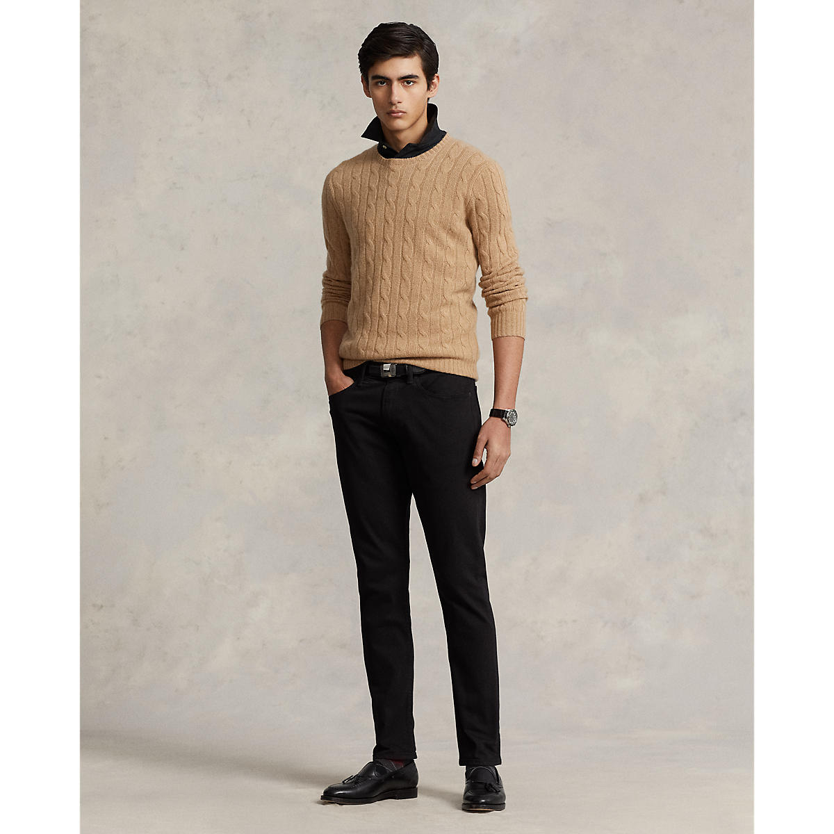 • Belt loops. Zip fly with a signature buttoned closure.