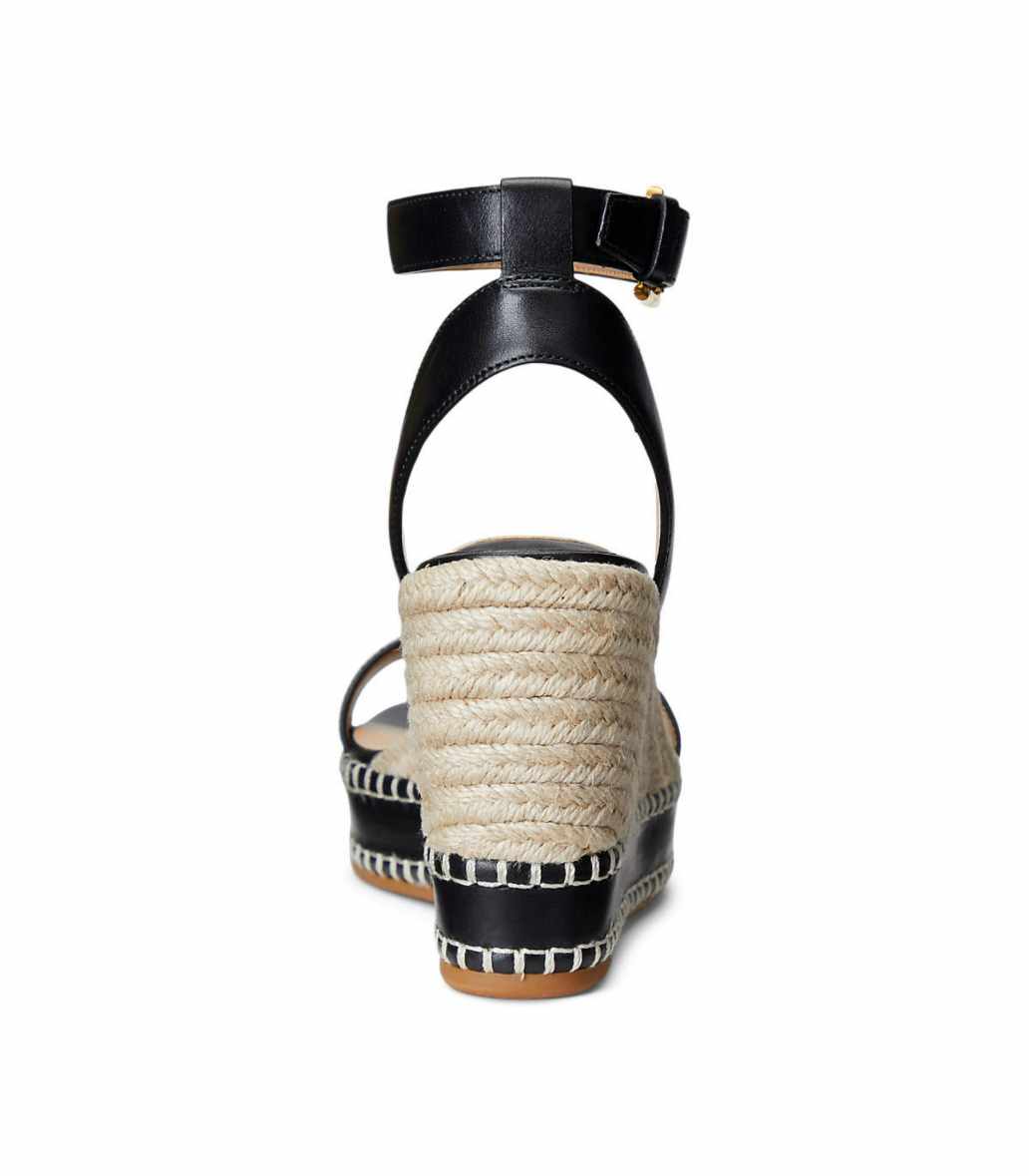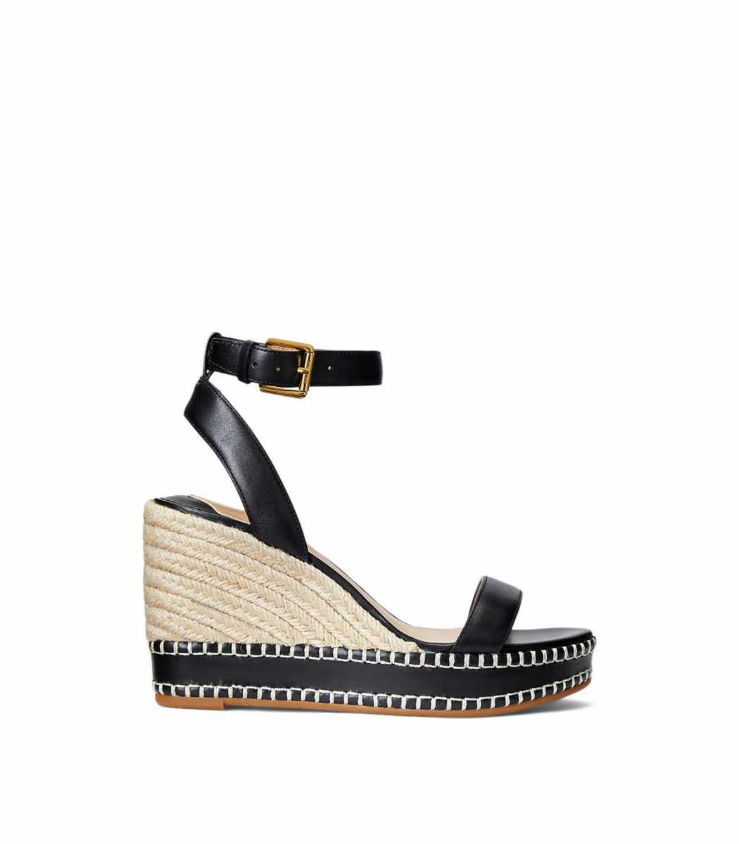 • A sumptuous burnished leather construction offers a sophisticated take on Lauren Ralph Lauren’s iconic espadrille. Punctuated with a signature buckled closure, its wedge silhouette creates a leg-lengthening effect.