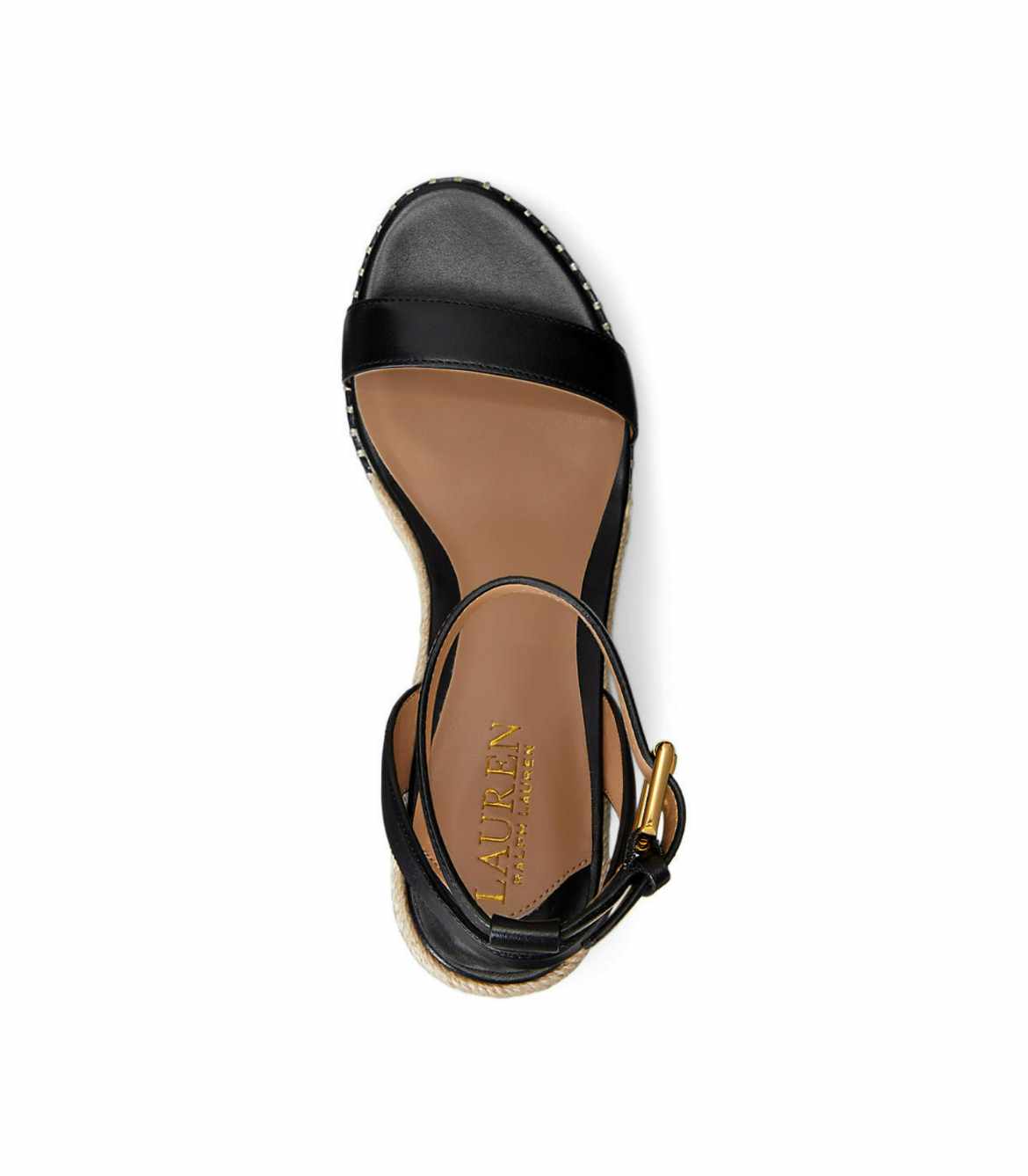 • Buckled ankle strap. “Lauren”-engraved buckle.