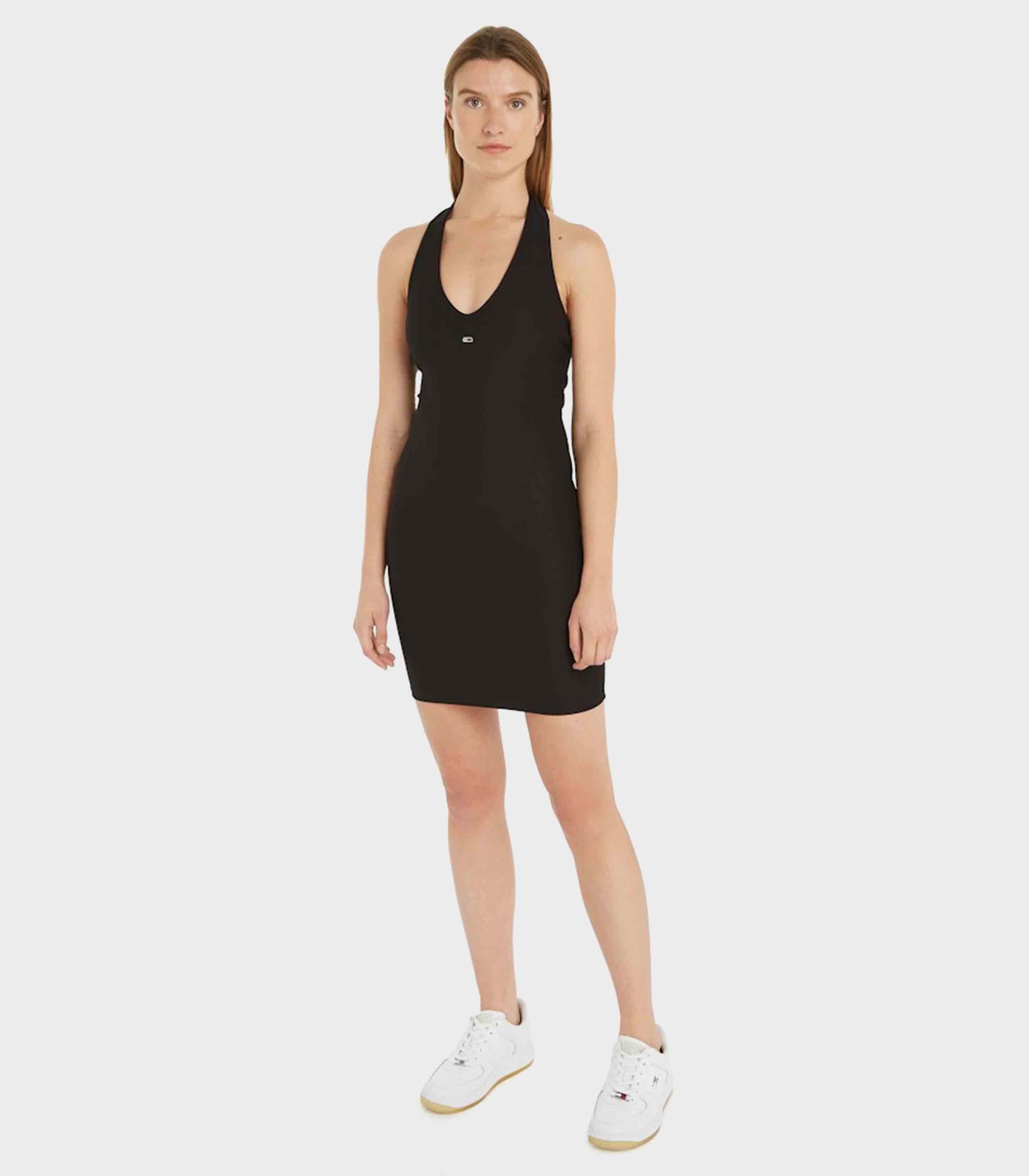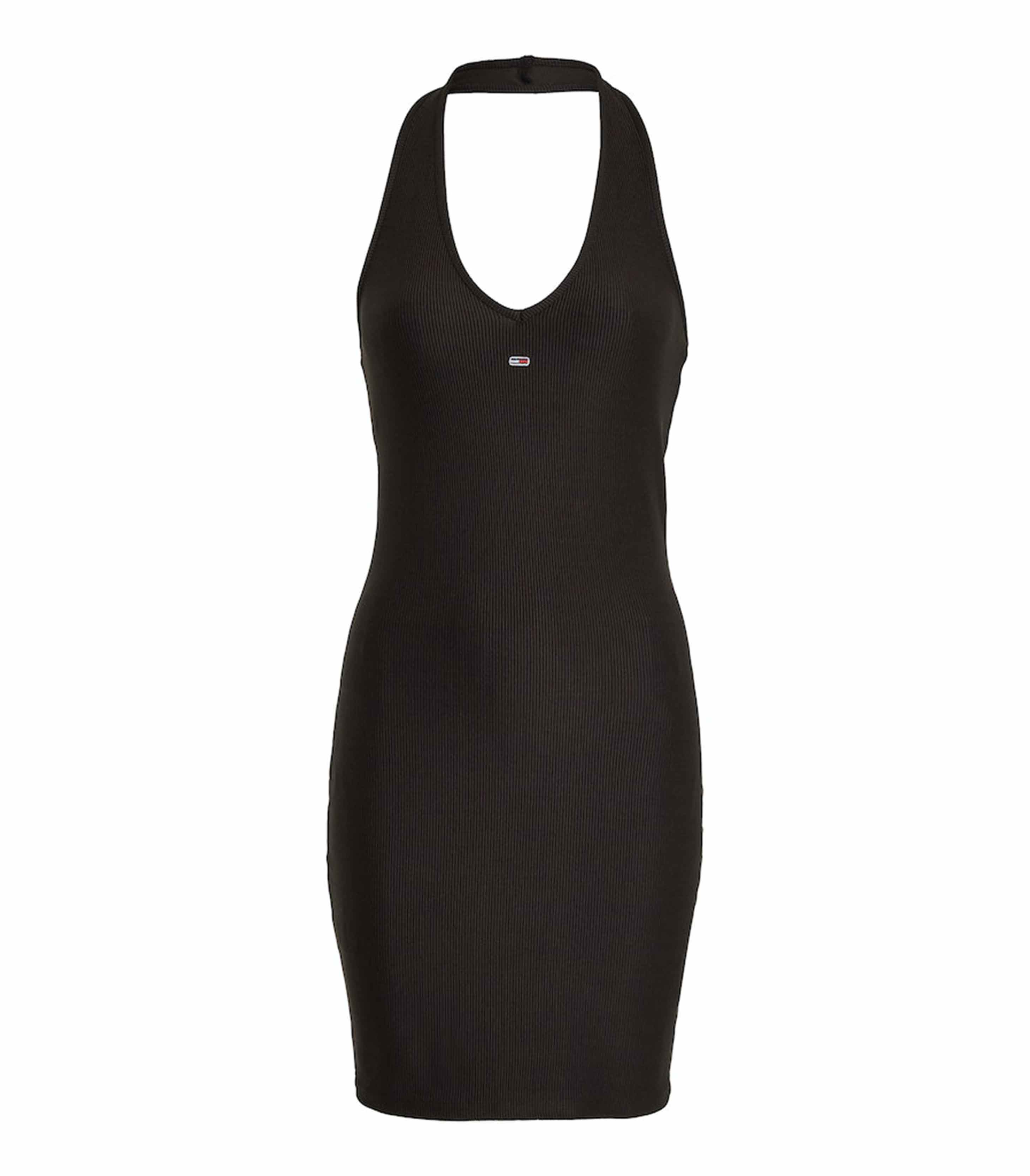 Tommy hilfiger jeans - tjw halterneck rib bodycon , xs , black , style dw0dw17921