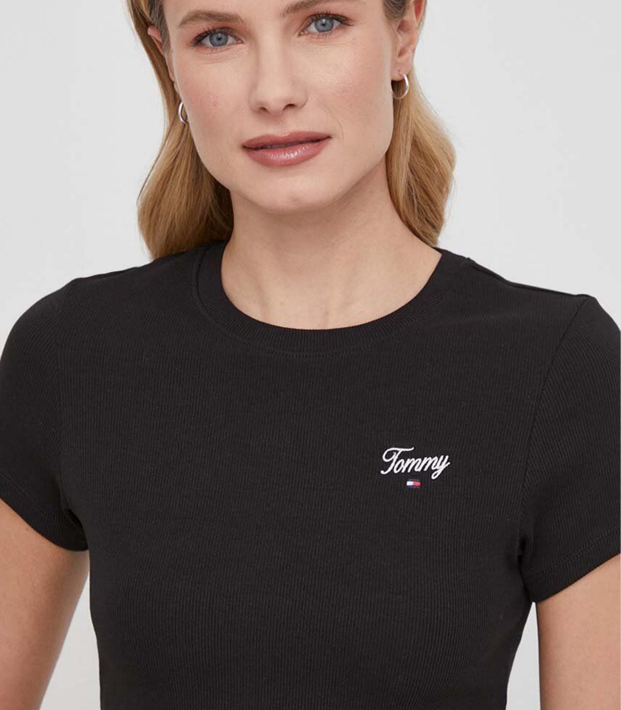 Tommy hilfiger jeans - tjw slim crp script tee , s , black , style dw0dw17986