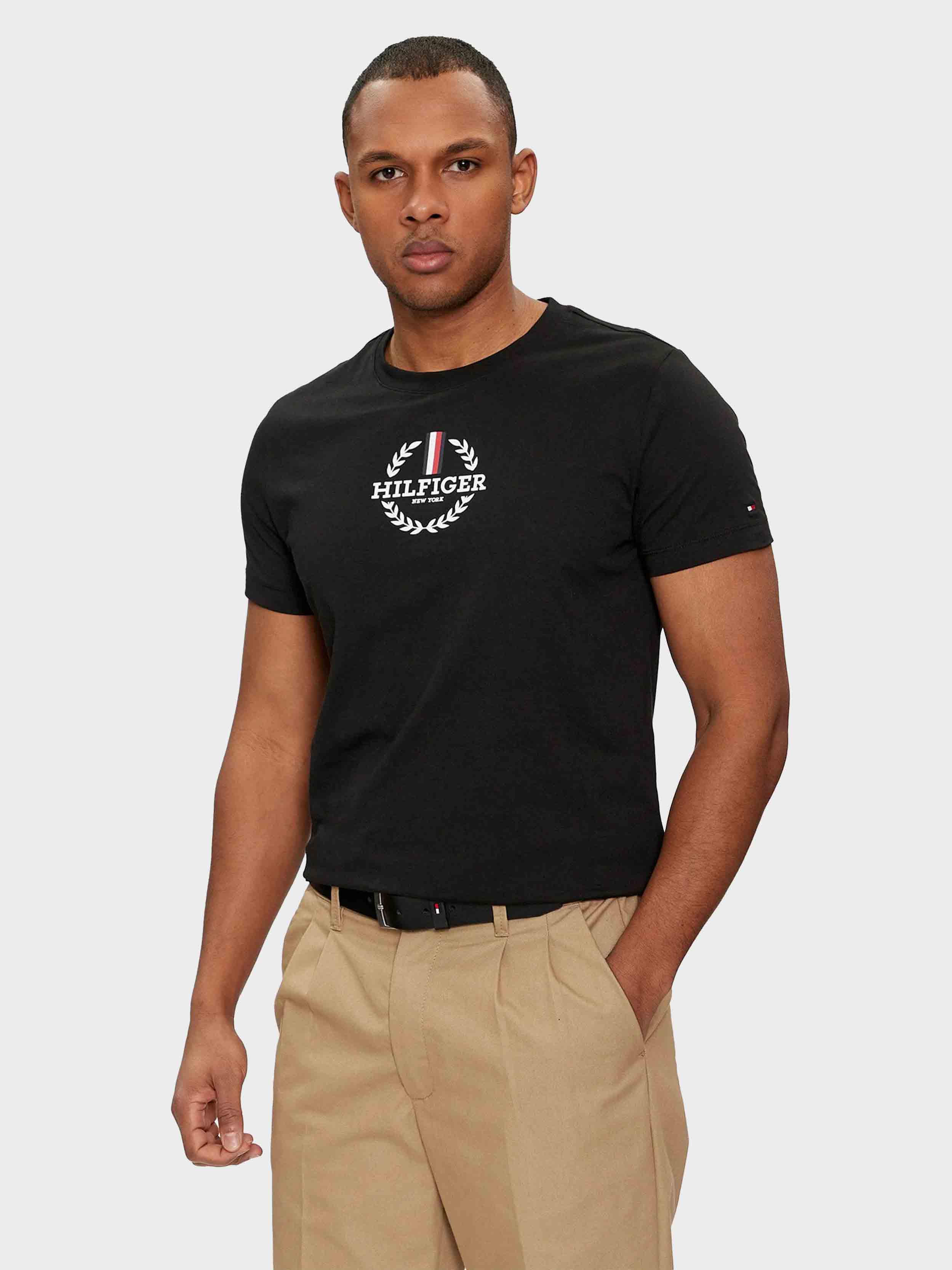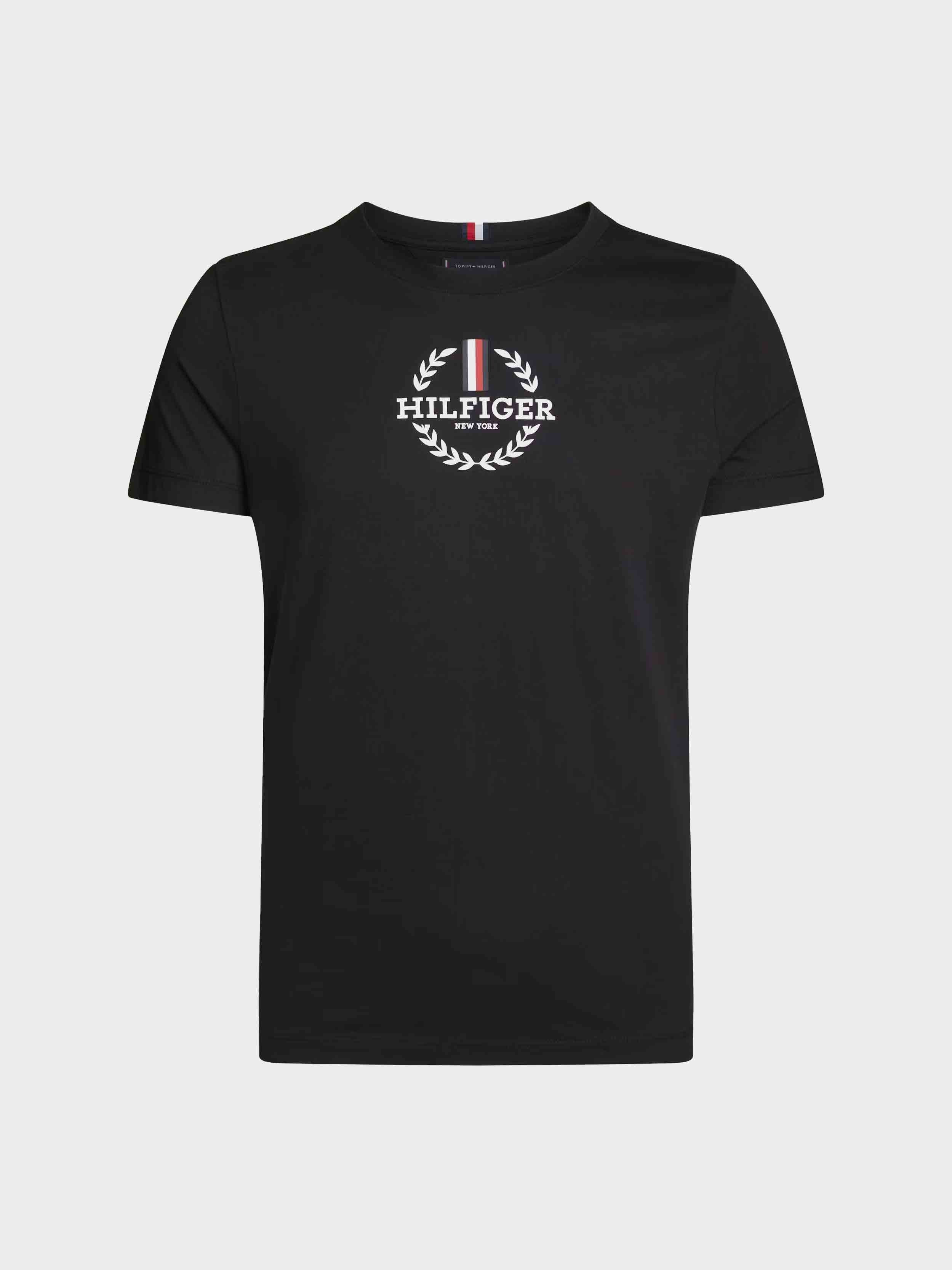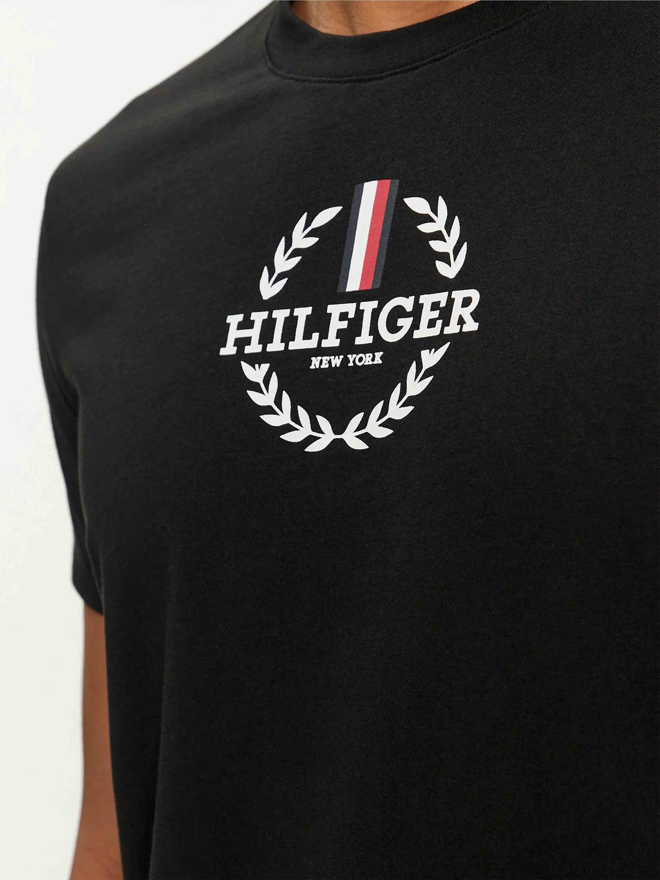 Tommy Hilfiger - GLOBAL STRIPE WREATH TEE , L , Black , Style MW0MW34388