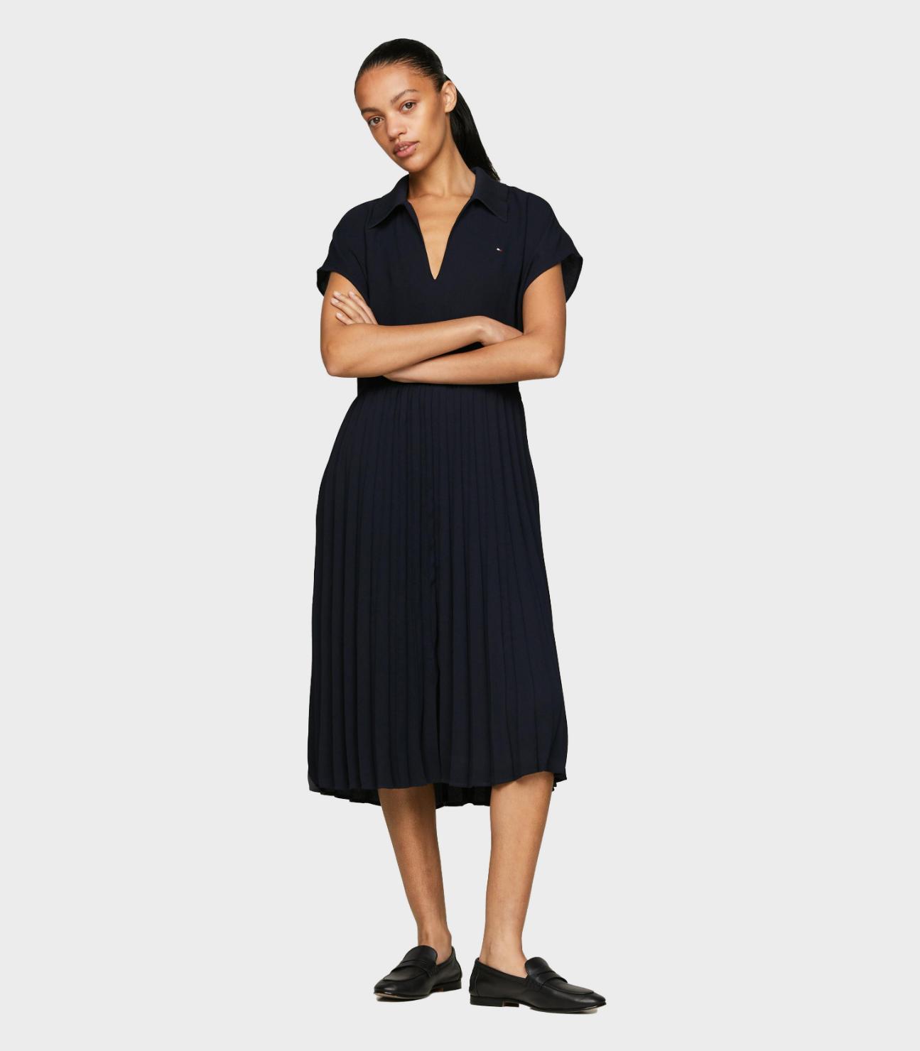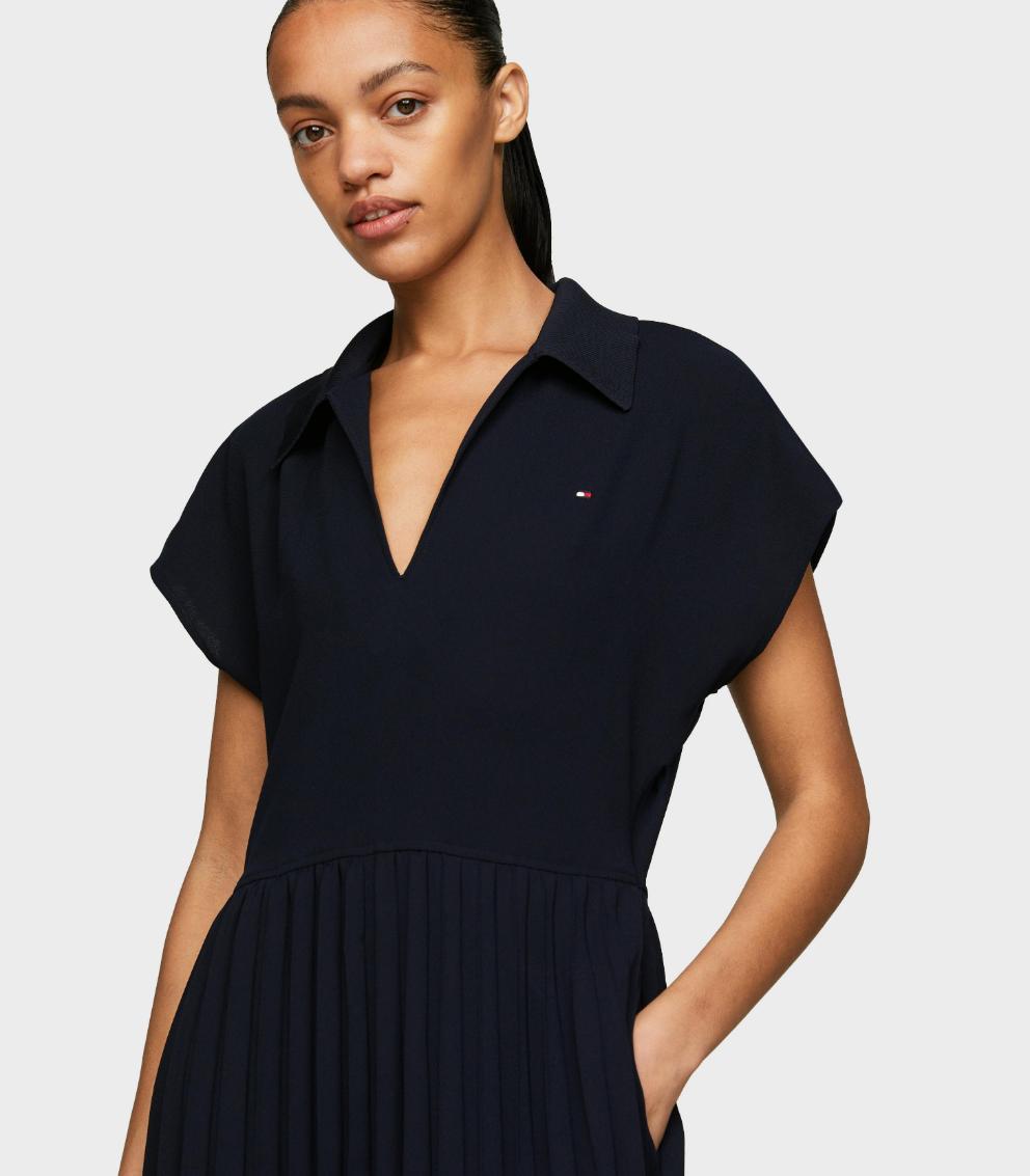 Tommy Hilfiger - Women's Fluid Pleated Ss Midi Polo Dress