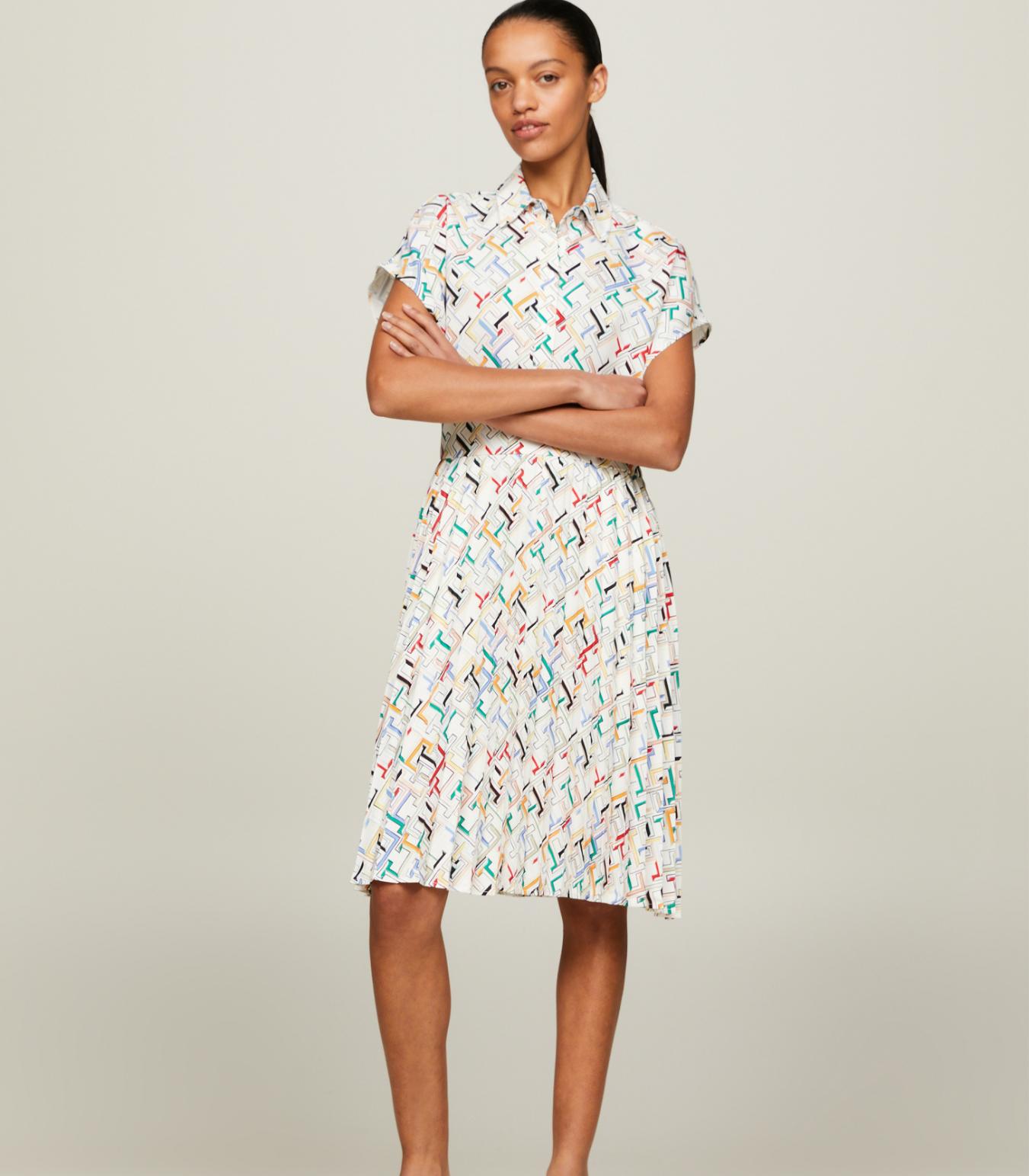 Tommy Hilifge - Monogram Pleated Knee Length Shirt Dress