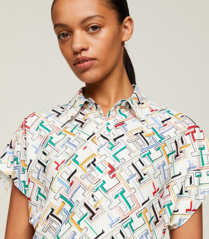 • Tommy Hilifge - Monogram Pleated Knee Length Shirt Dress