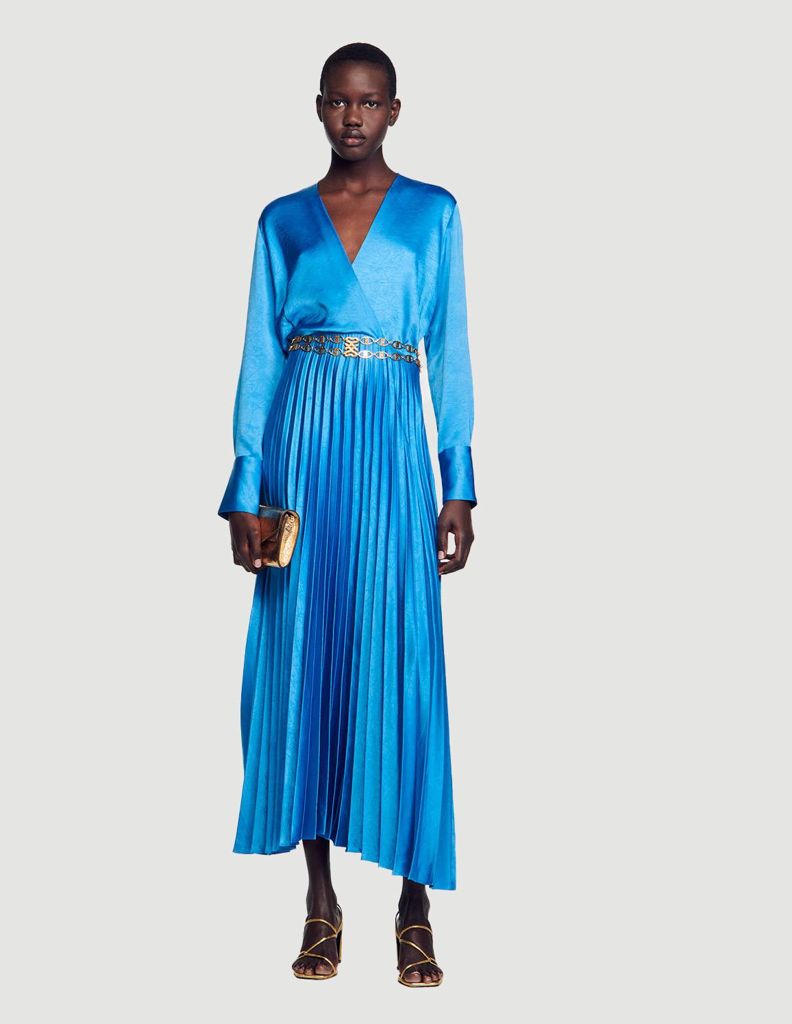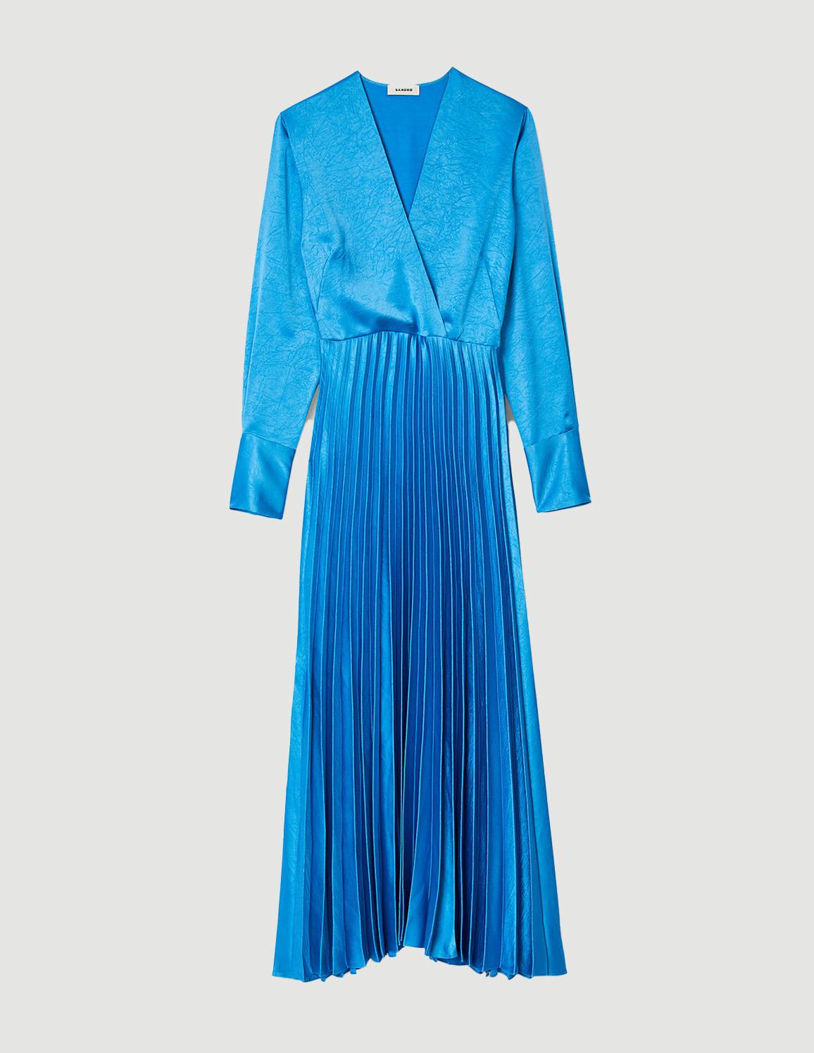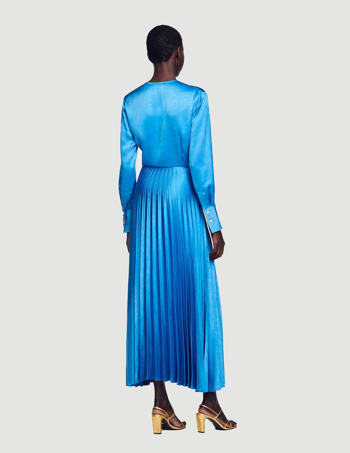• SANDRO - Pleated Satin-Effect Midi Dress