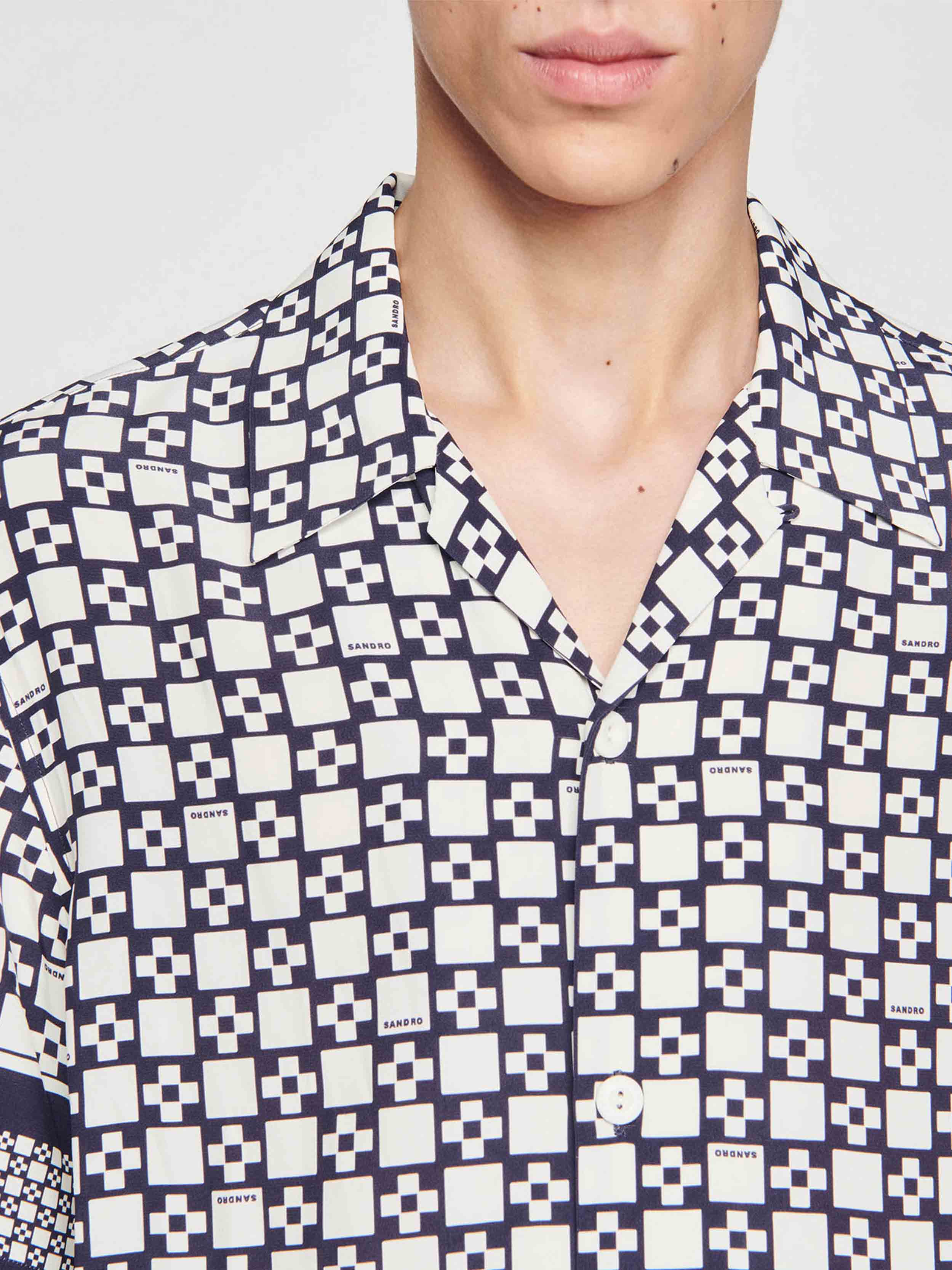 • Billowy shirt with Square Cross pattern and shark collar, short sleeves and button fastening.