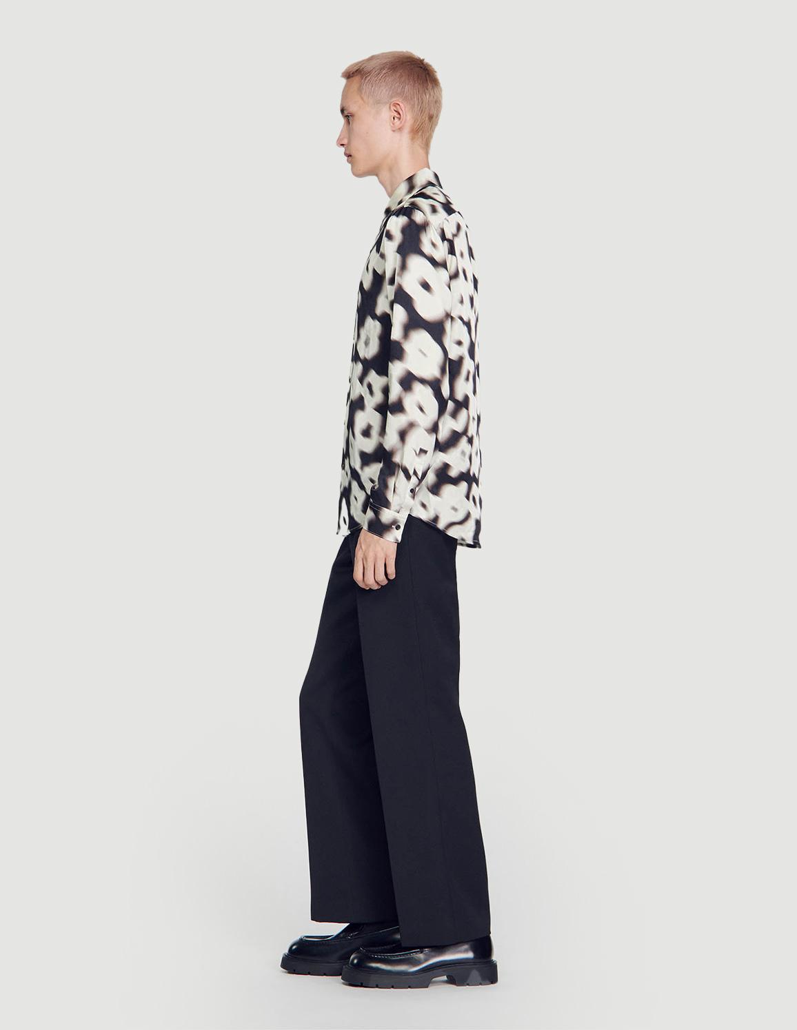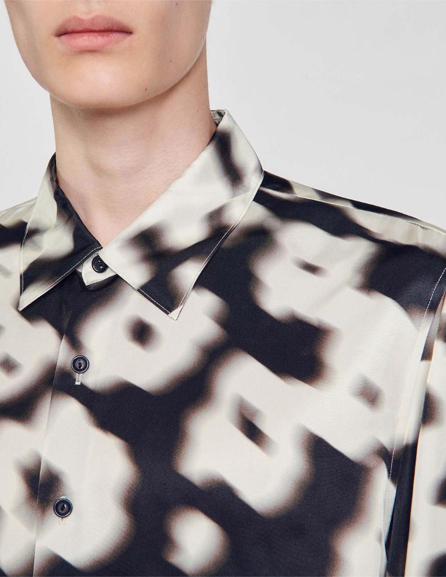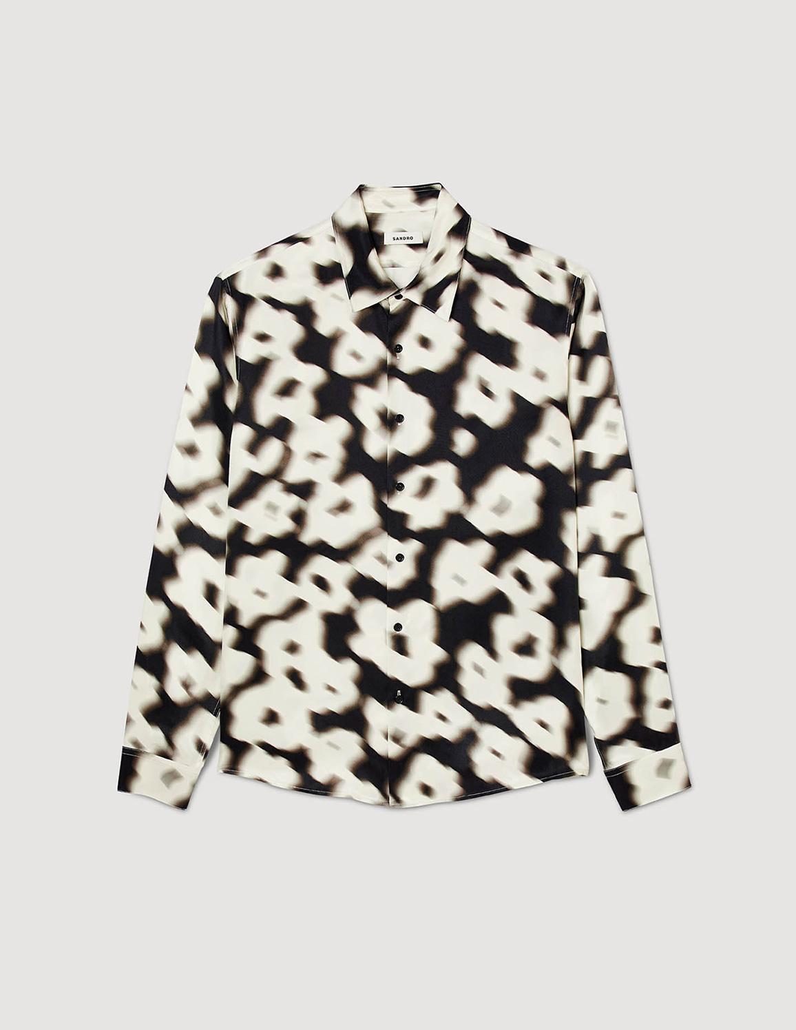 • Loose shirt with a collar, long sleeves and button fastening. Decorated with a blurred floral print.