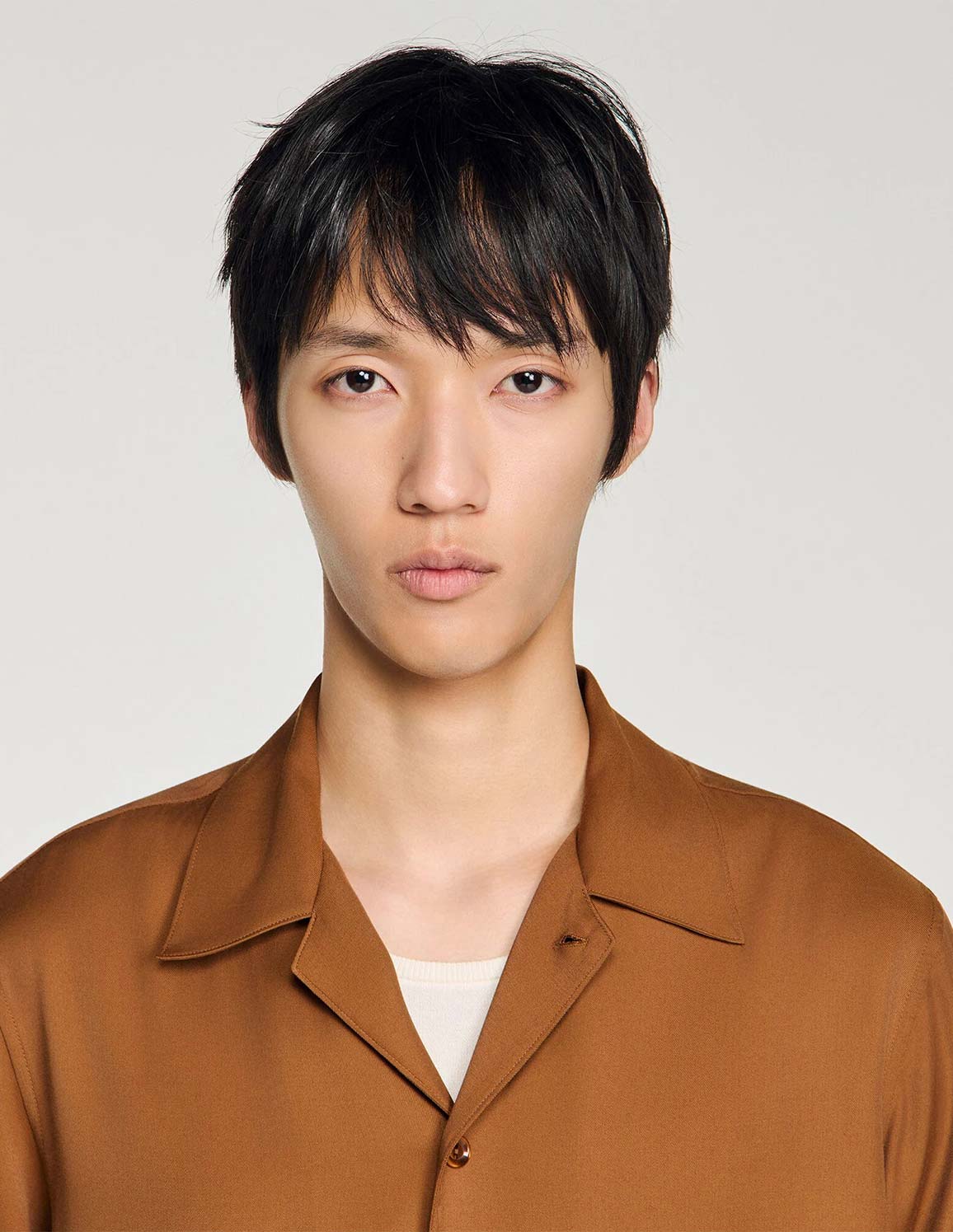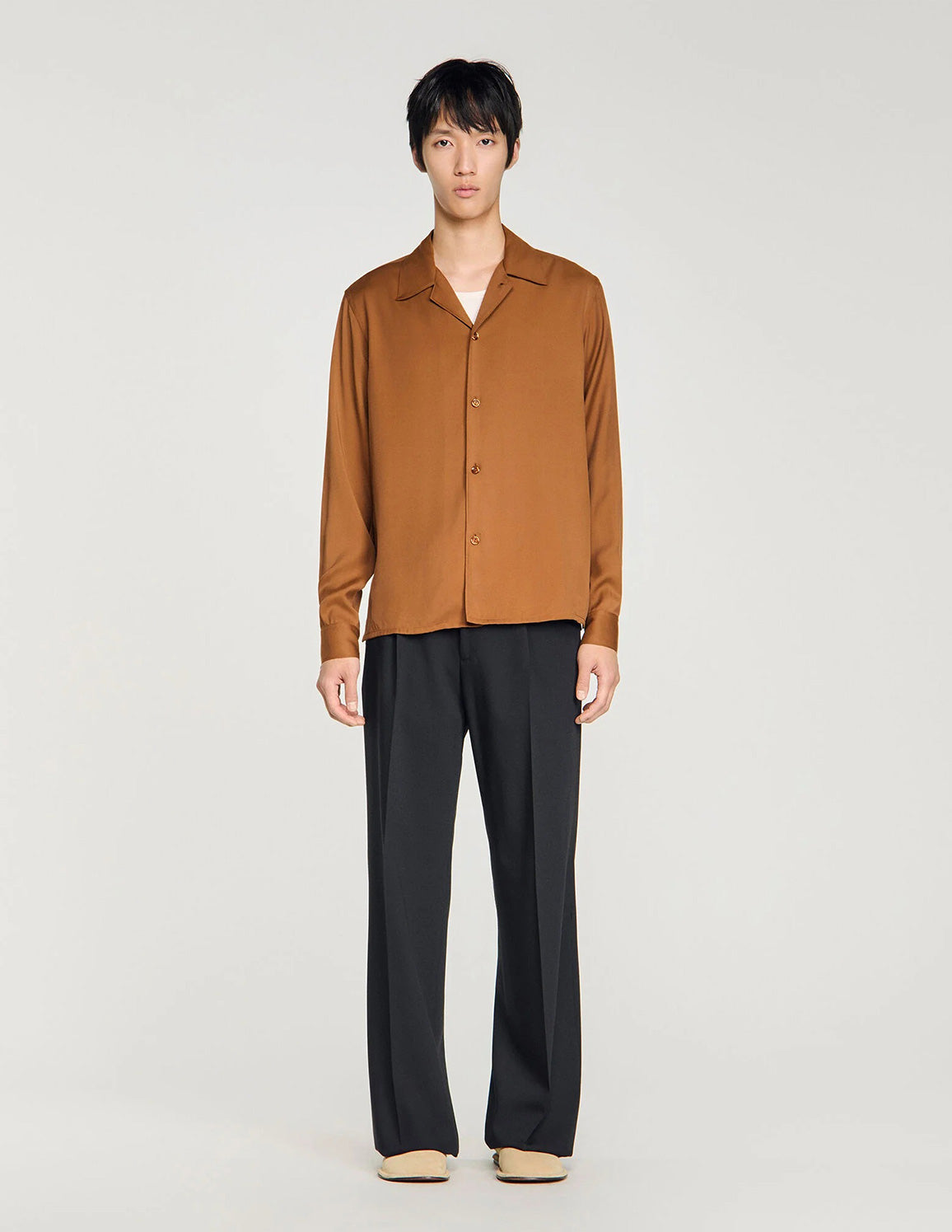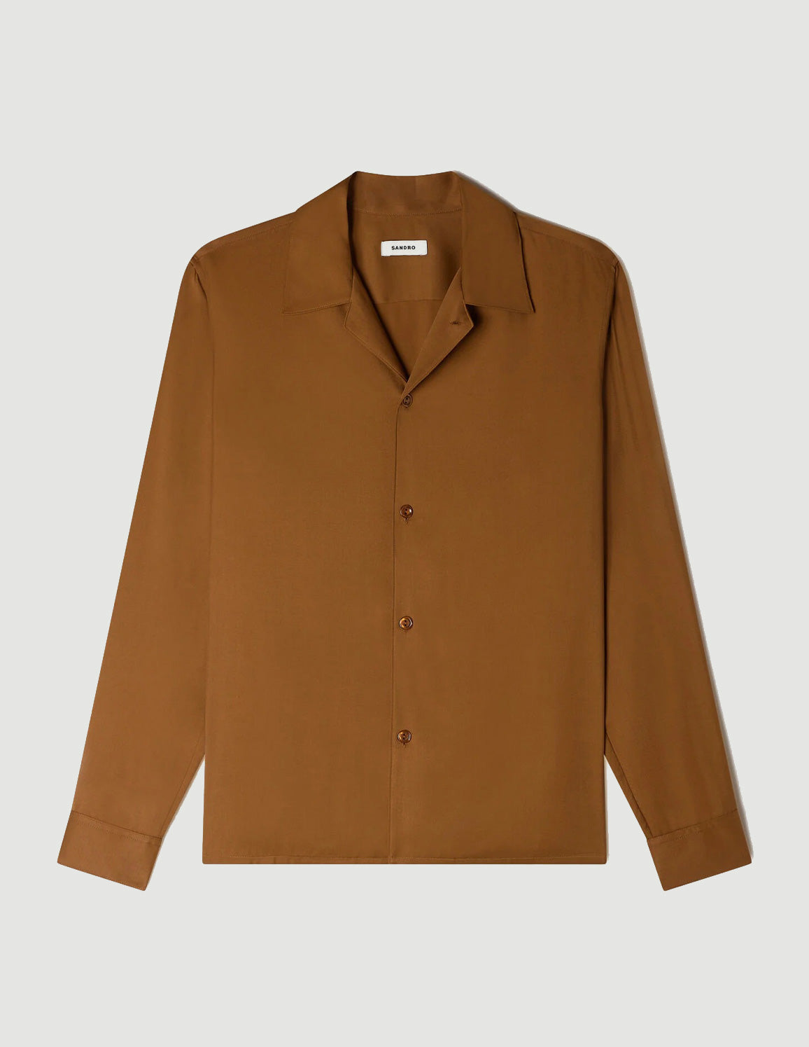 • Floaty shirt with long sleeves, buttoned cuffs, shark collar and button fastening.