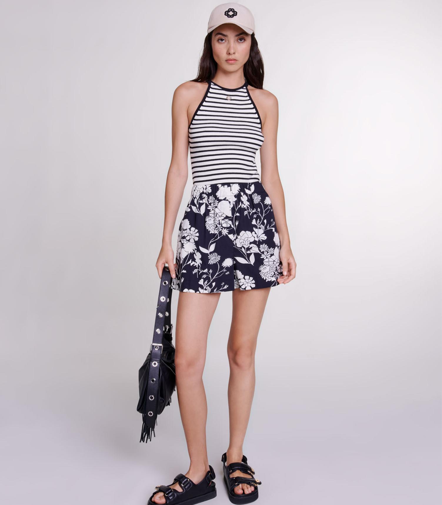 • Somewhere between elegant and casual, these cotton poplin shorts add a touch of freshness and lightness to your silhouette. Alongside an elasticated waistband and two pockets, they have a floral pattern inspired by the vintage style of the '70s.